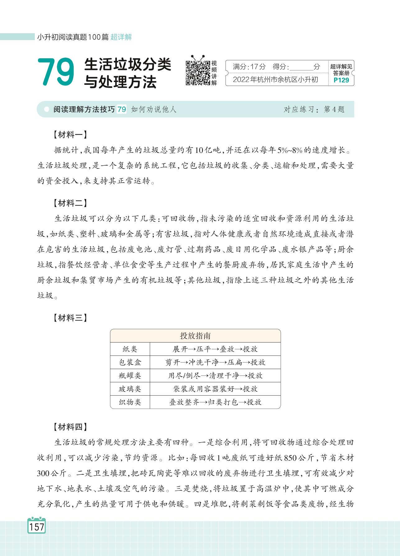 2024全一册六年级语文人教版 专题八 非连续性文本 79 生活垃圾分类与处理方法