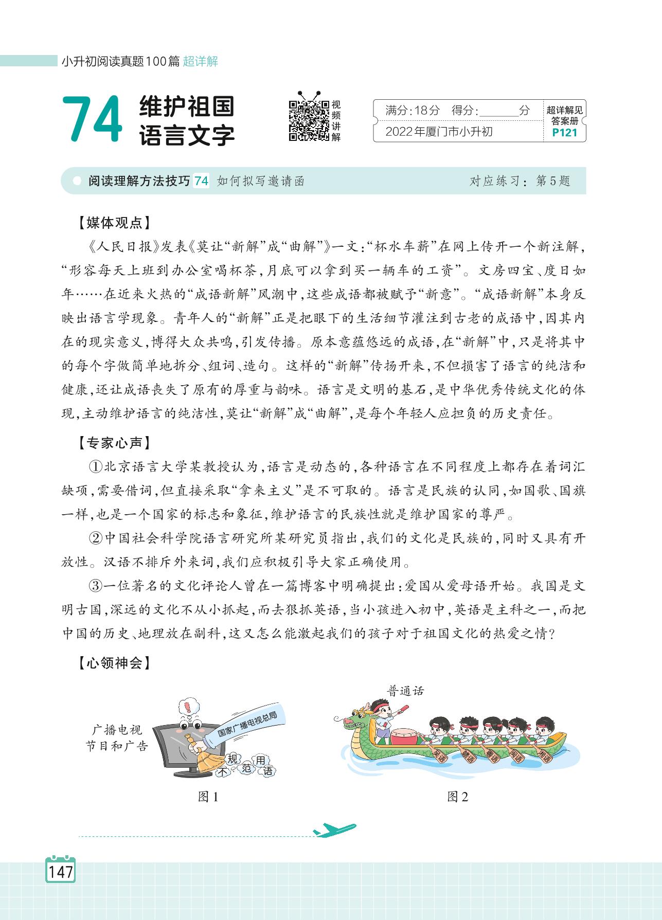 2024全一册六年级语文人教版 专题八 非连续性文本 74 维护祖国语言文字