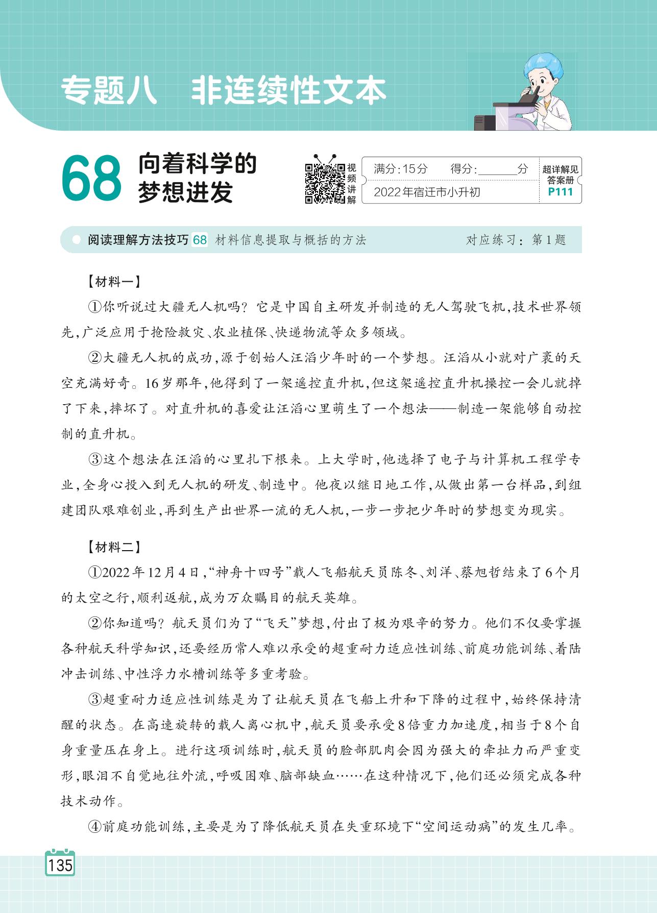 2024全一册六年级语文人教版 专题八 非连续性文本 68 向着科学的梦想进发