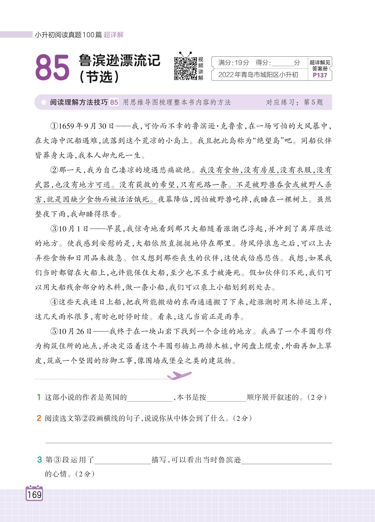 2024全一册六年级语文人教版 专题九 名著阅读 85 鲁滨逊漂流记(节选)