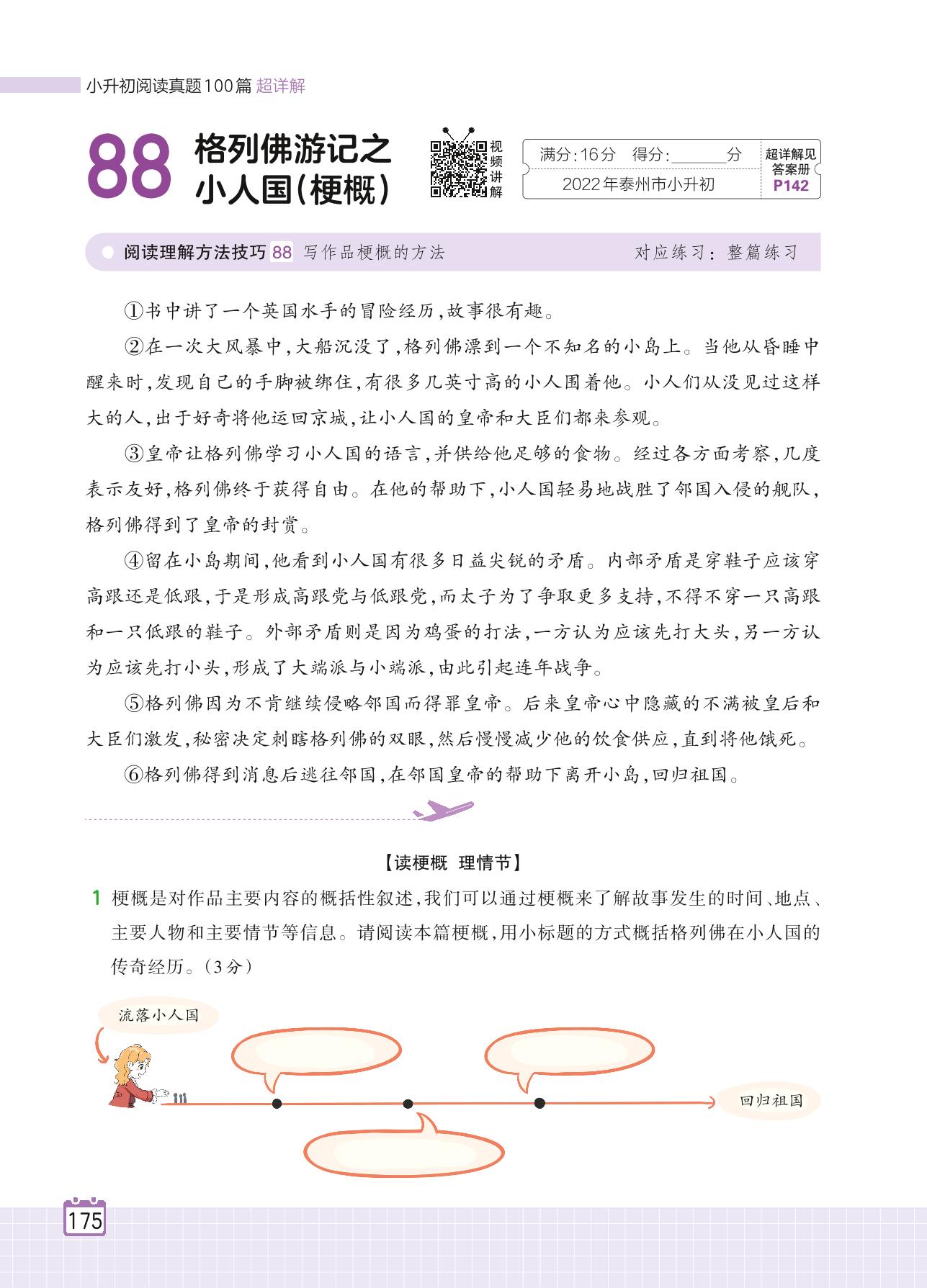 2024全一册六年级语文人教版 专题九 名著阅读 88 格列佛游记之小人国(梗概)