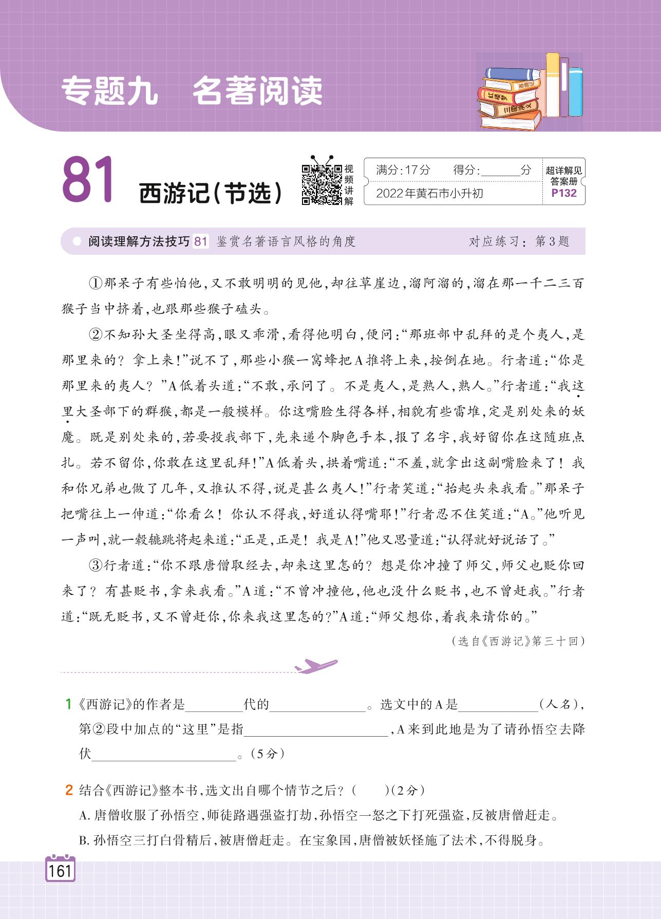 2024全一册六年级语文人教版 专题九 名著阅读 81 西游记(节选)