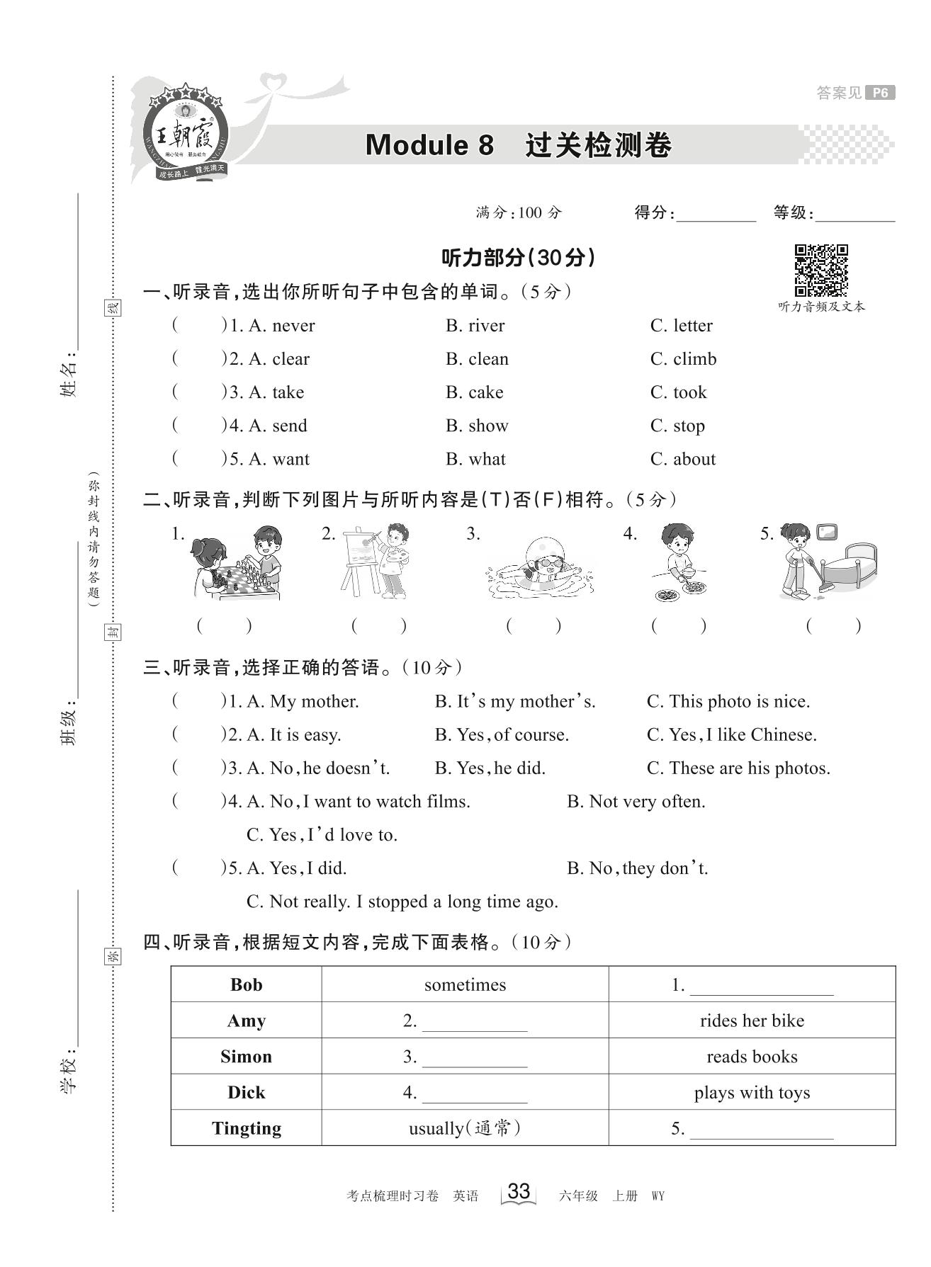 2023上册六年级英语外研版 Module 8 过关检测卷