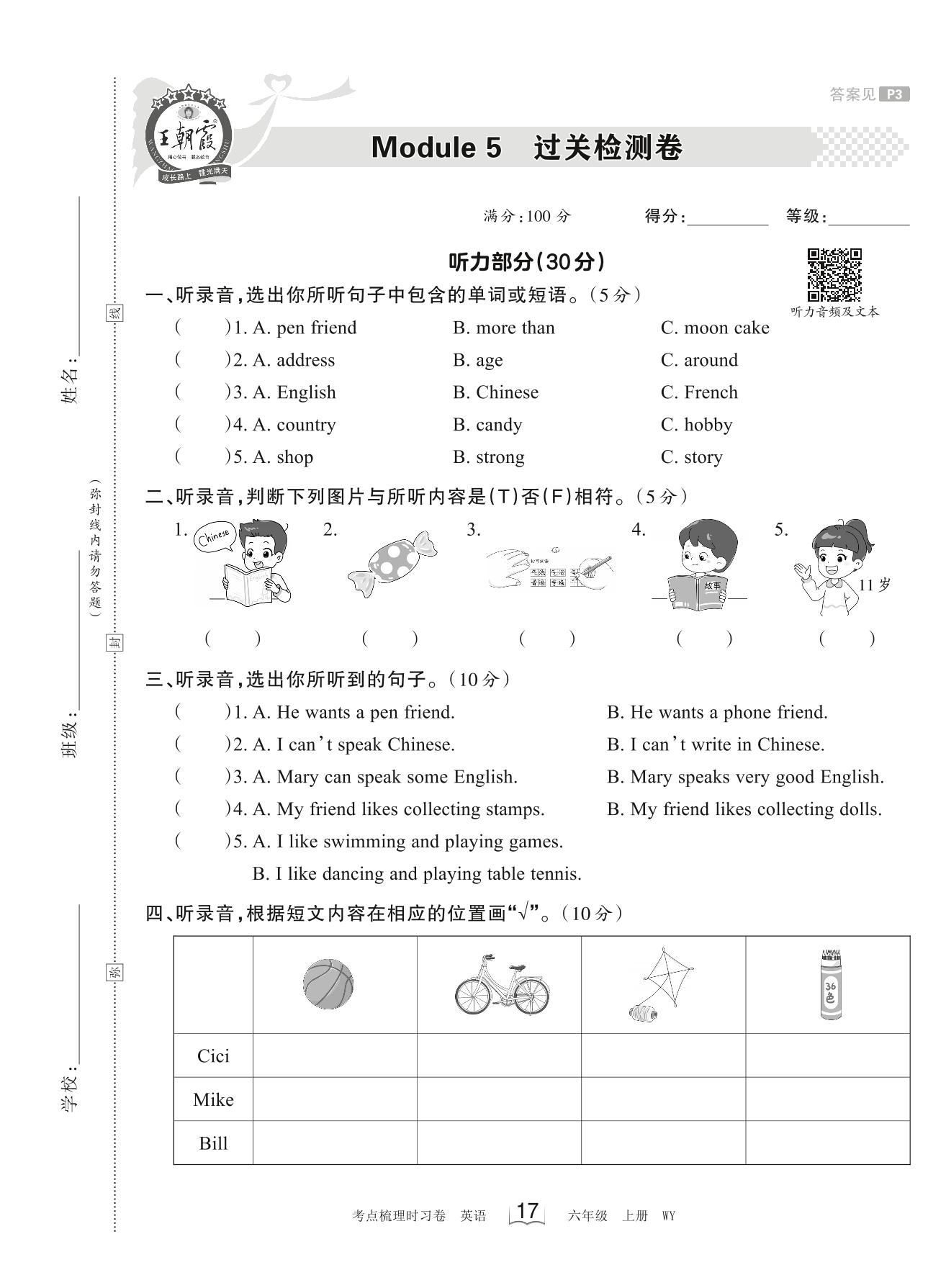 2023上册六年级英语外研版 Module 5 过关检测卷