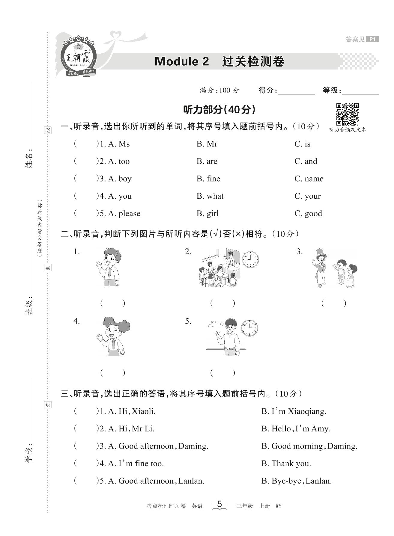 2023上册三年级英语外研版 Module 2 过关检测卷
