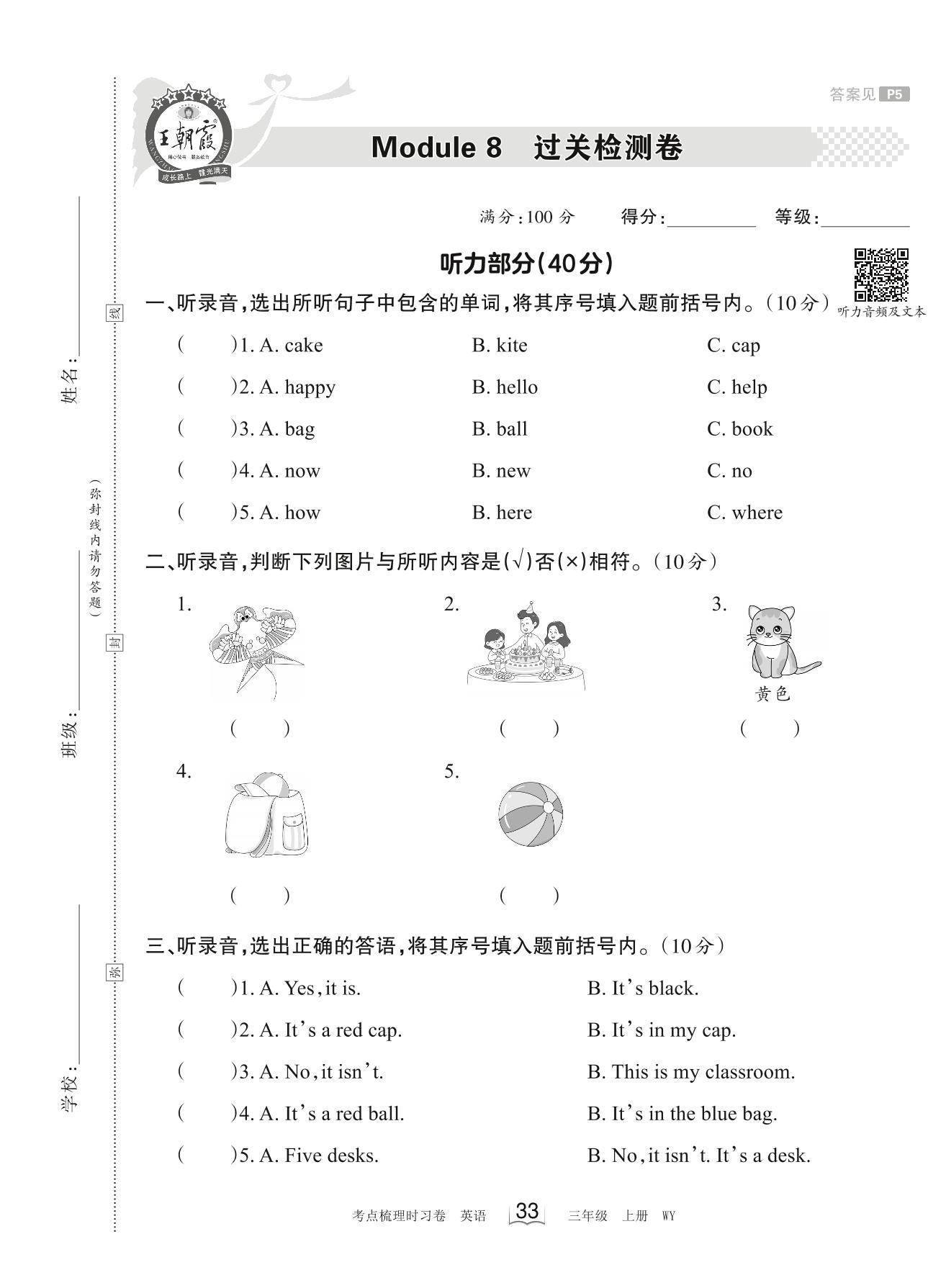 三年级英语外研版(三起始)上册单元卷