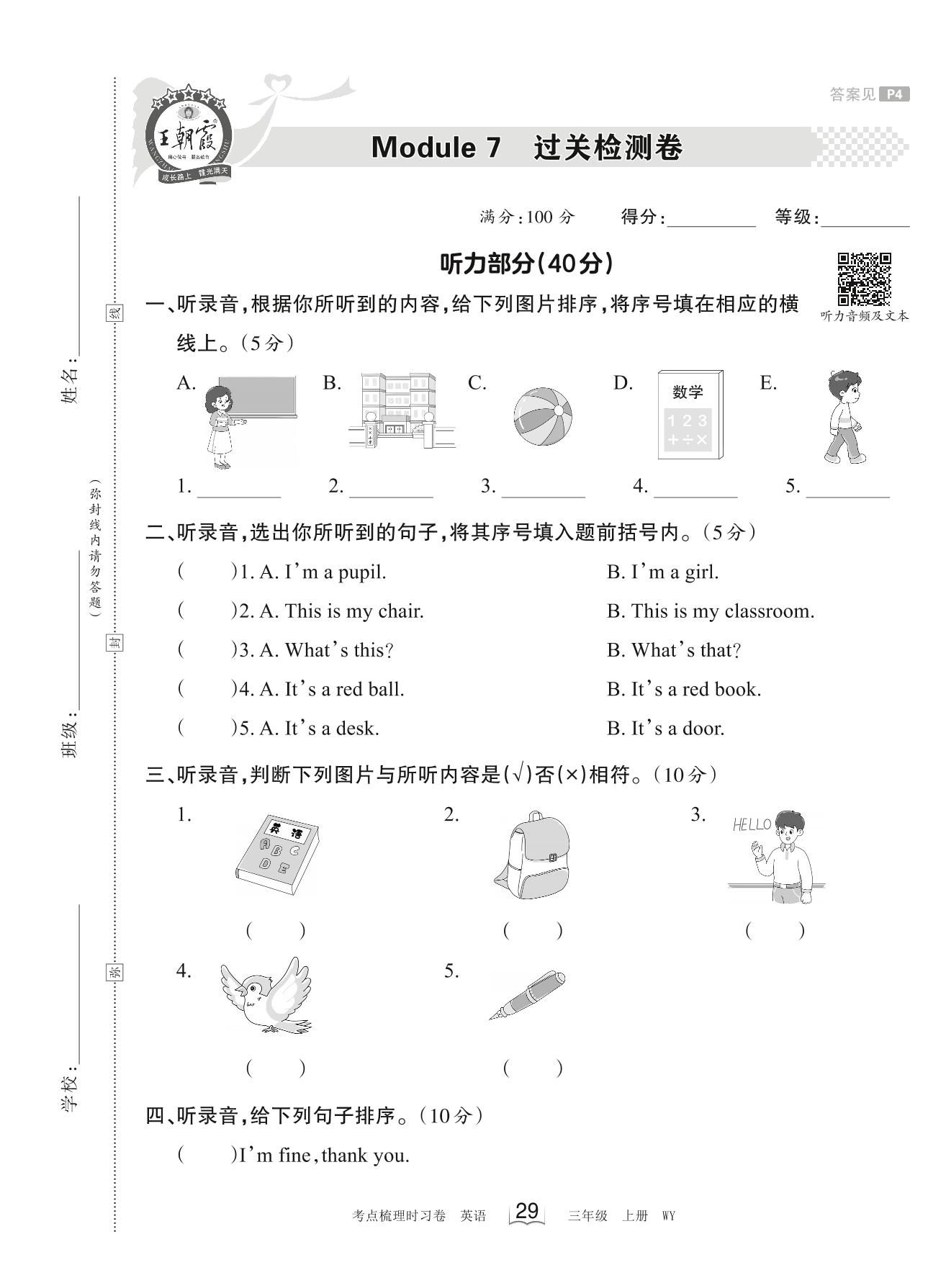 2023上册三年级英语外研版 Module 7 过关检测卷