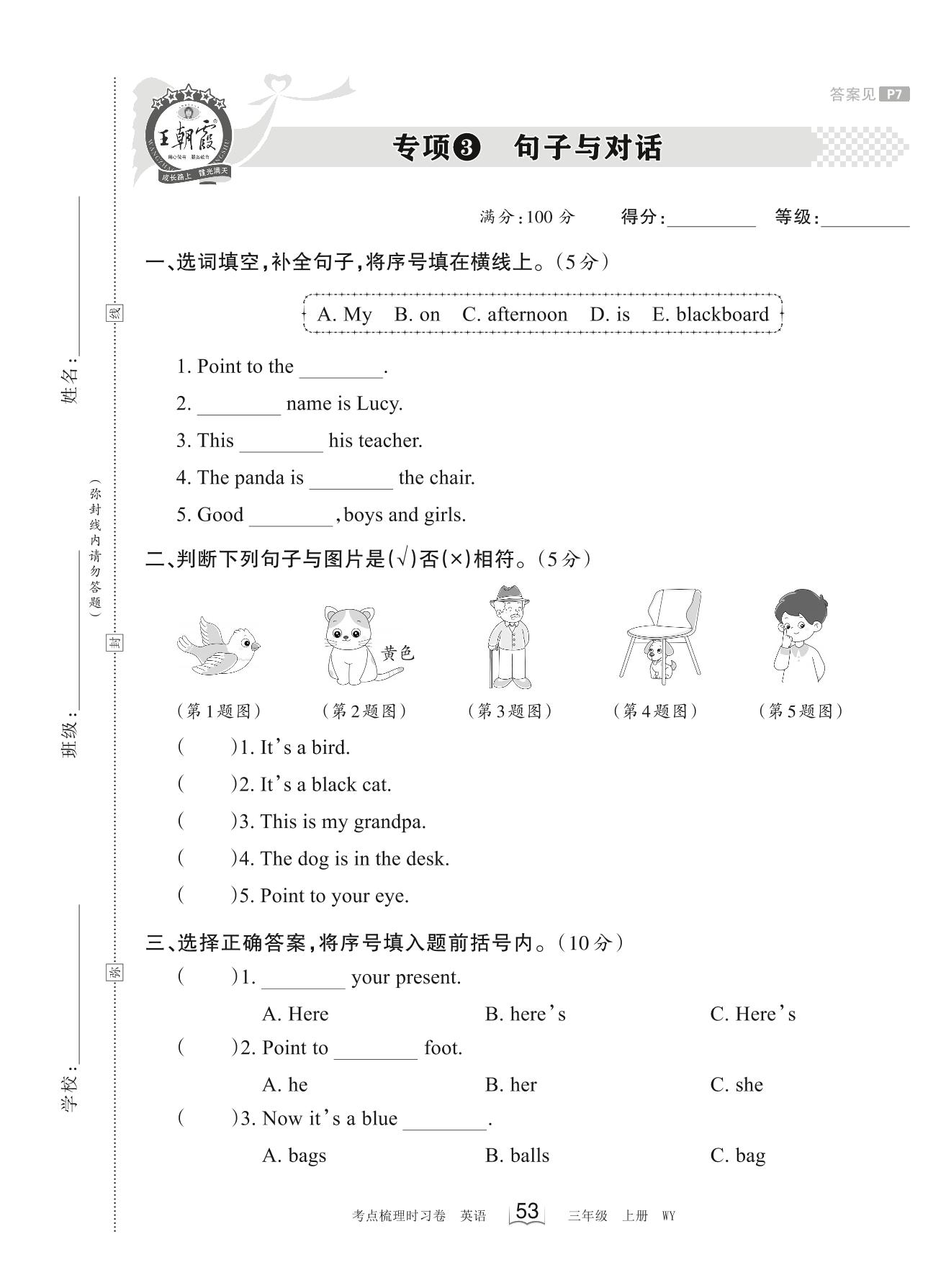 2023上册三年级英语外研版 专项3 句子与对话