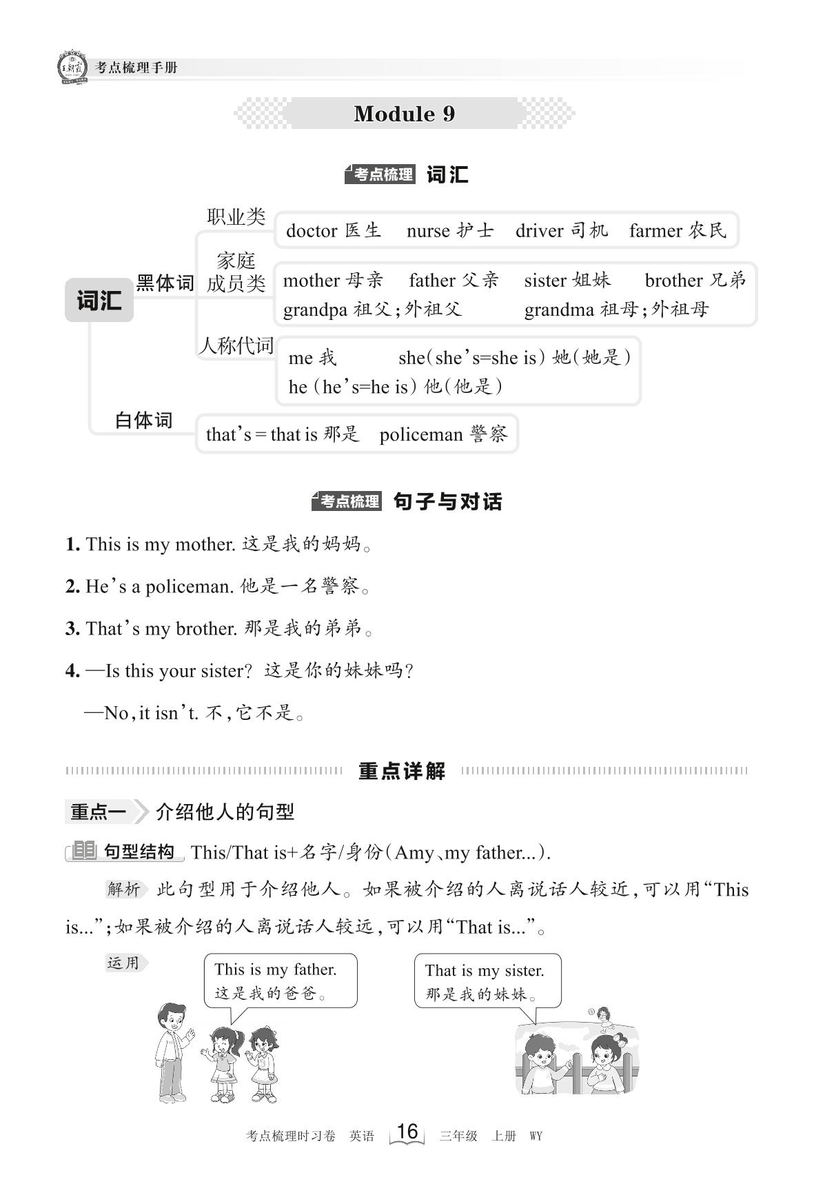 2023上册三年级英语外研版 考点梳理手册——Module 9