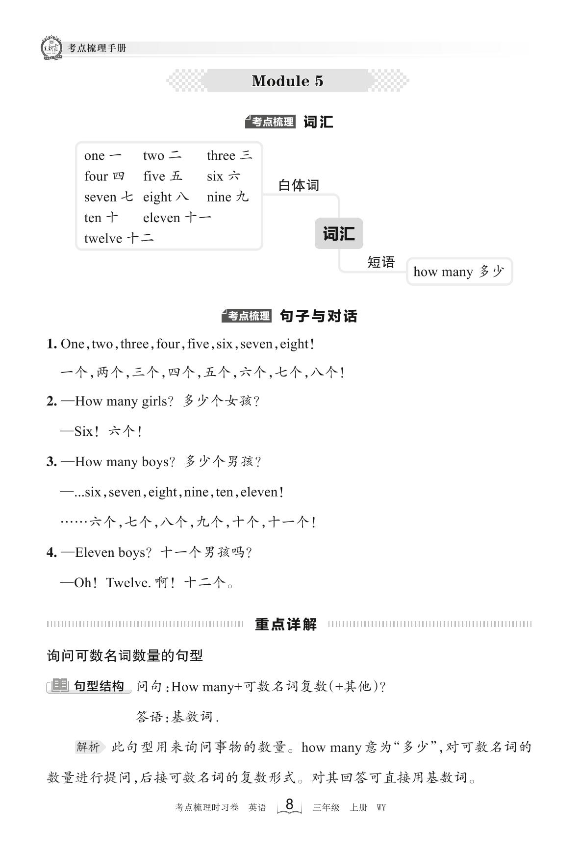 2023上册三年级英语外研版 考点梳理手册——Module 5