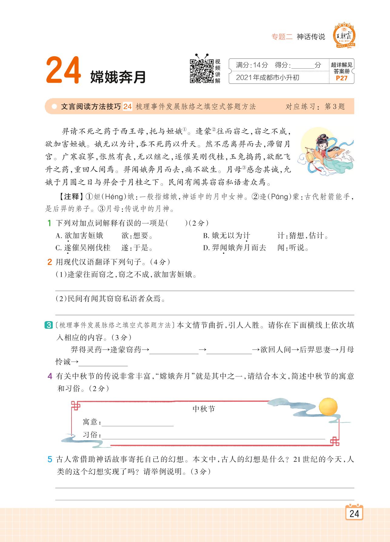 2024全一册六年级语文人教版 专题二 神话传说 24 嫦娥奔月