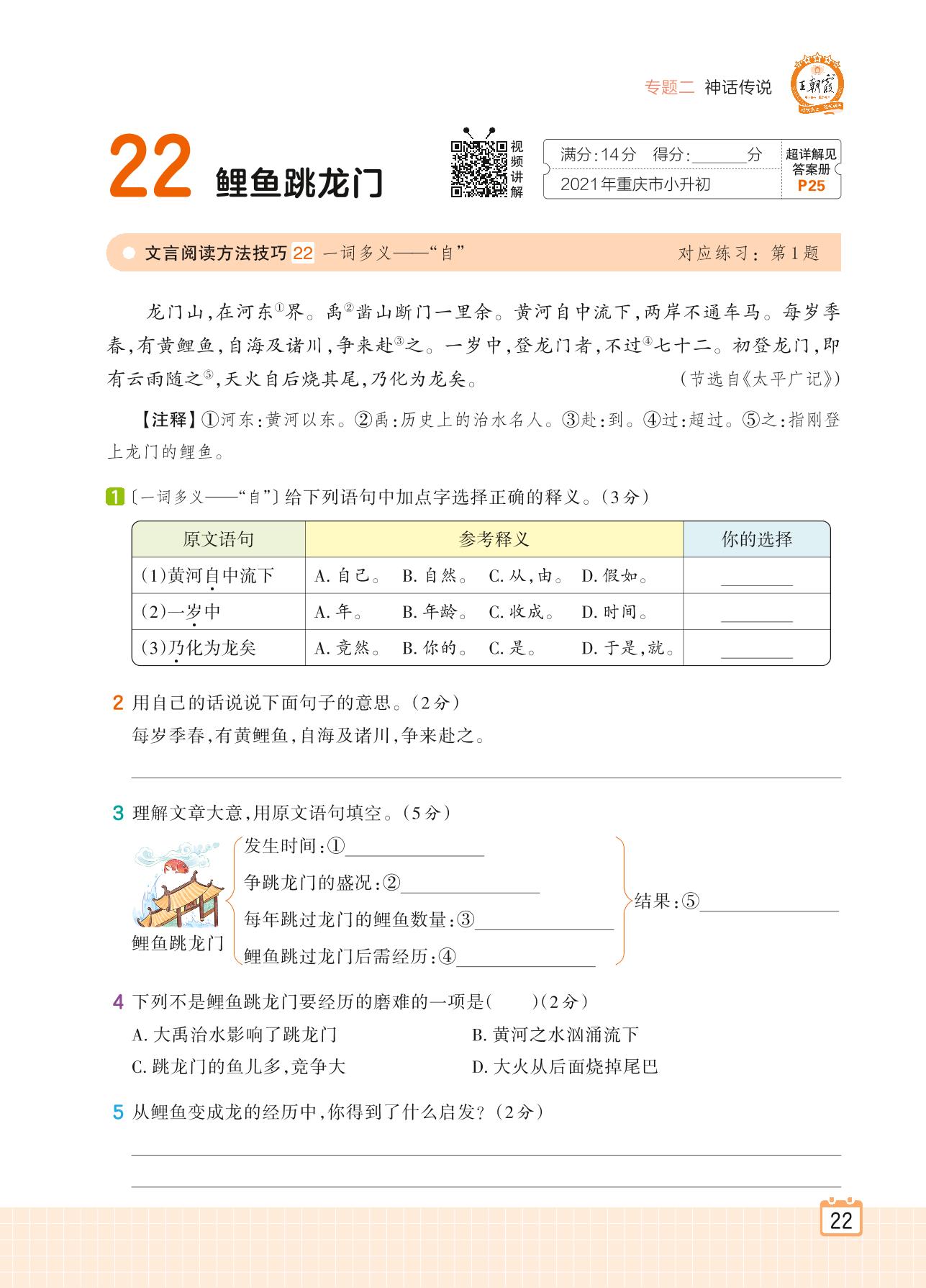 2024全一册六年级语文人教版 专题二 神话传说 22 鲤鱼跳龙门