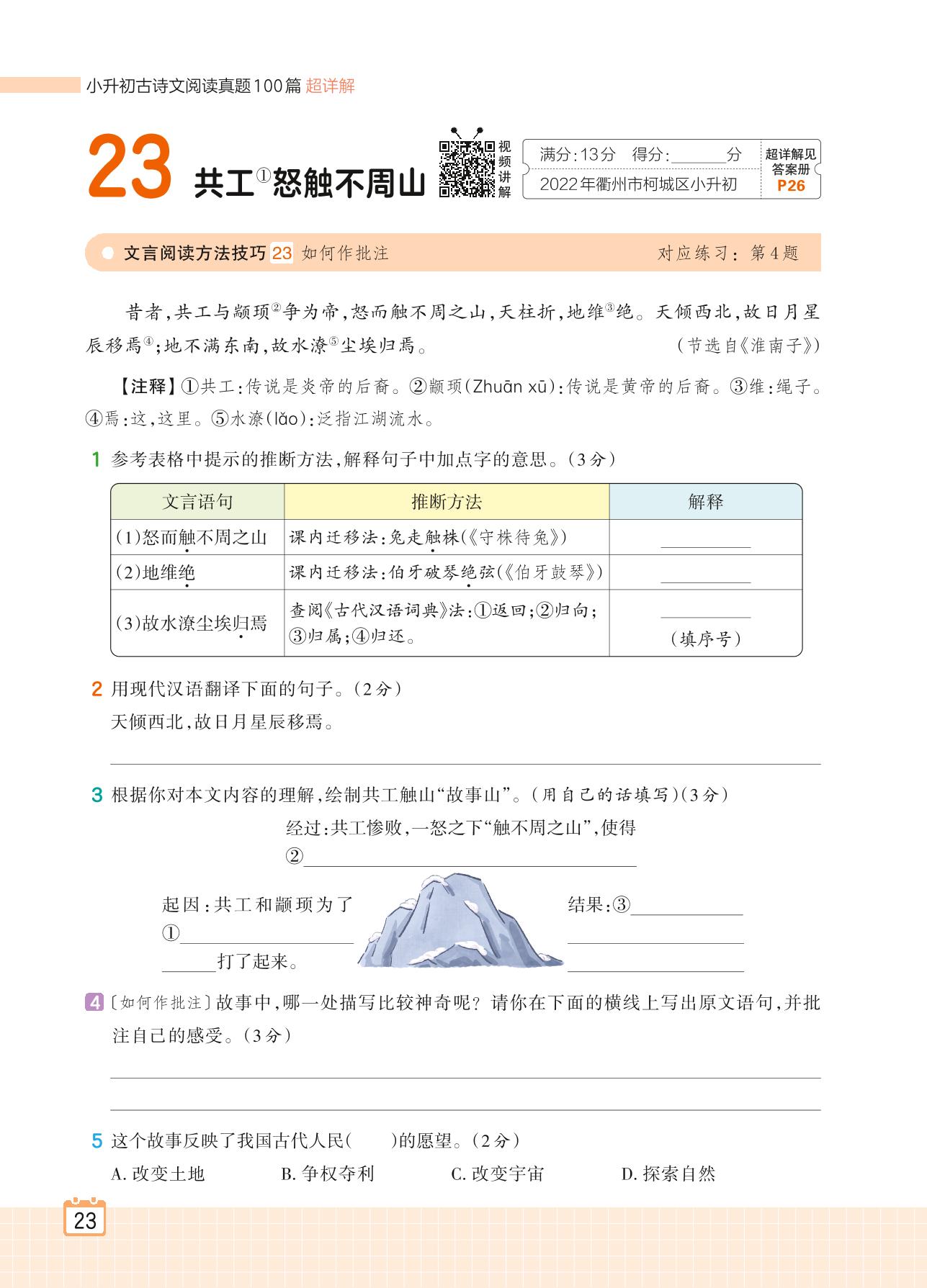 2024全一册六年级语文人教版 专题二 神话传说 23 共工怒触不周山