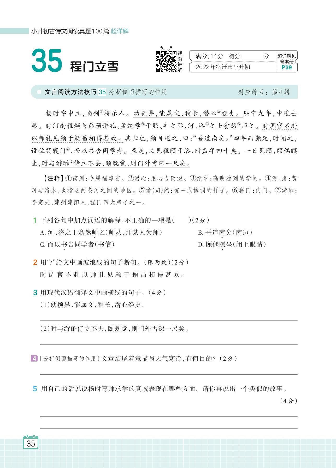 2024全一册六年级语文人教版 专题三 历史故事 35 程门立雪