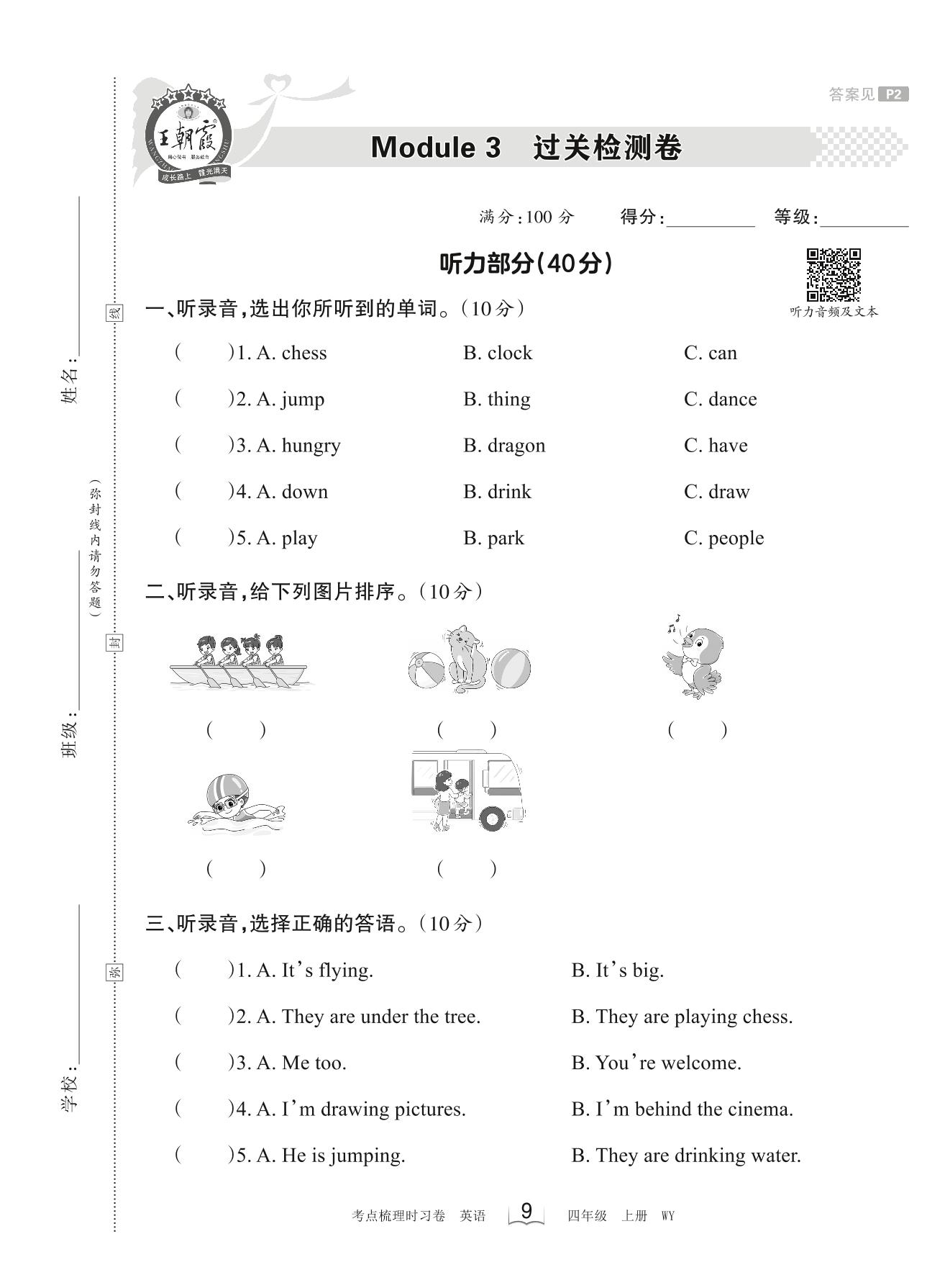 2023上册四年级英语外研版 Module 3 过关检测卷