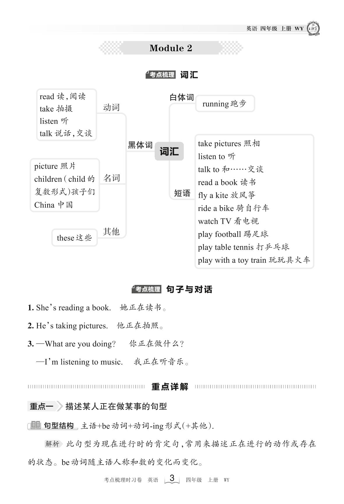 2023上册四年级英语外研版 考点梳理手册——Module 2