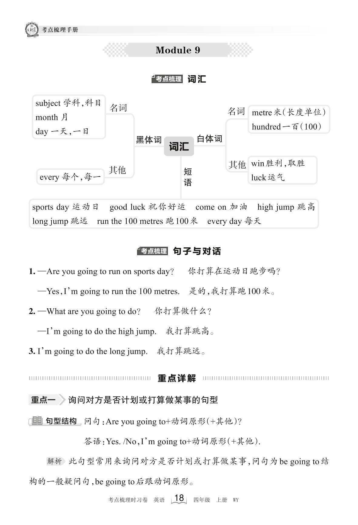 2023上册四年级英语外研版 考点梳理手册——Module 9