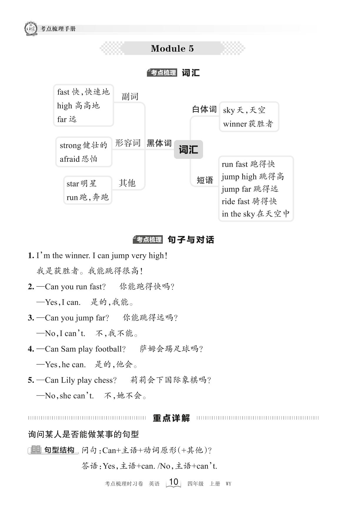 2023上册四年级英语外研版 考点梳理手册——Module 5