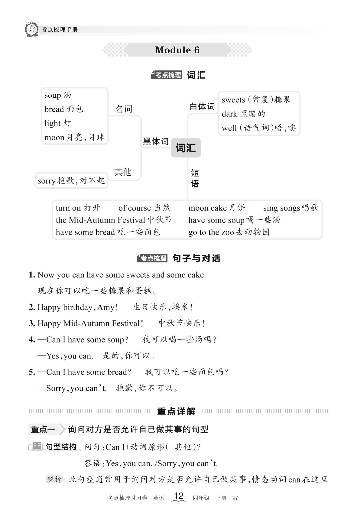2023上册四年级英语外研版 考点梳理手册——Module 6
