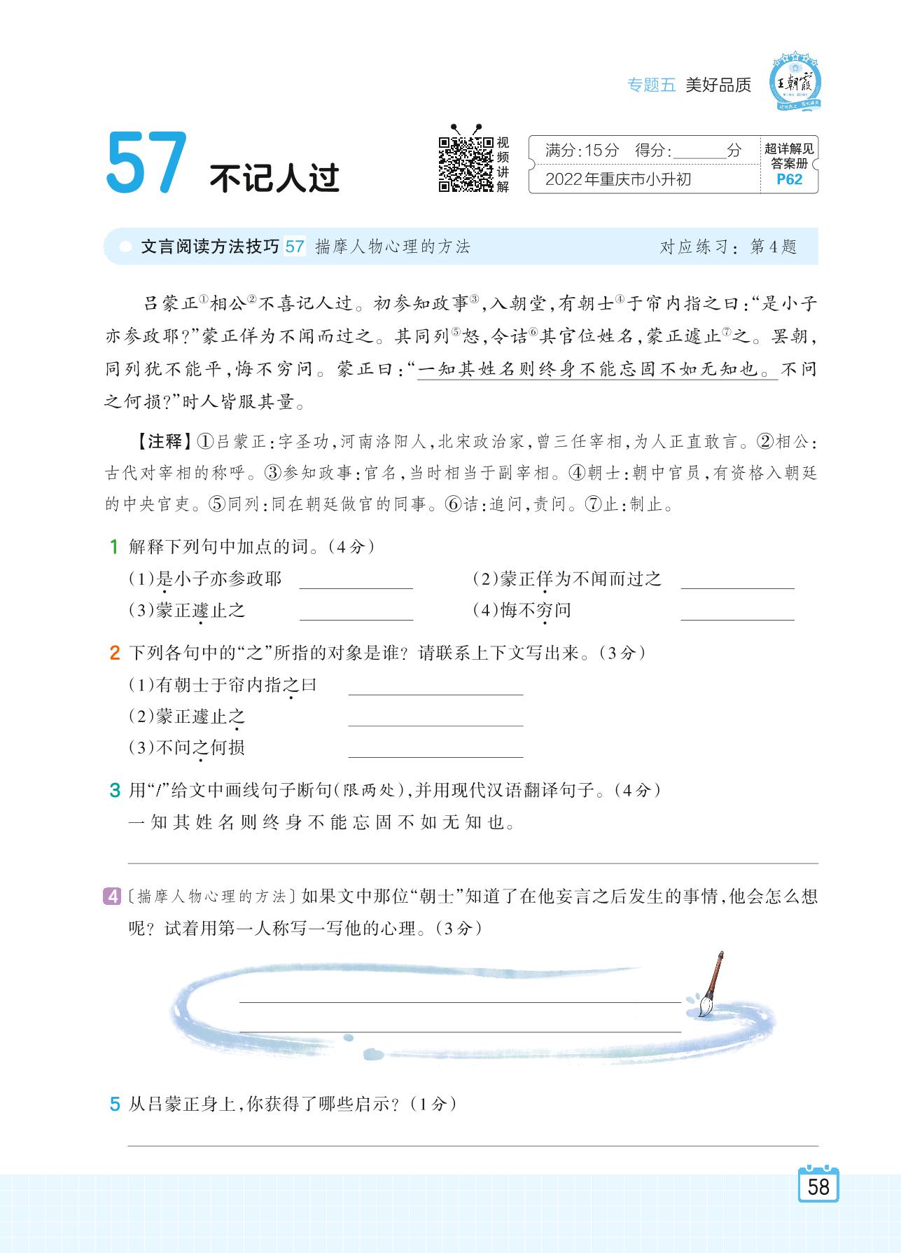 2024全一册六年级语文人教版 专题五 美好品质 57 不记人过