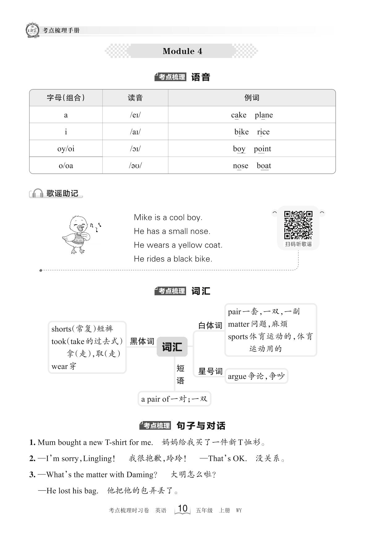 2023上册五年级英语外研版 考点梳理手册——Module 4
