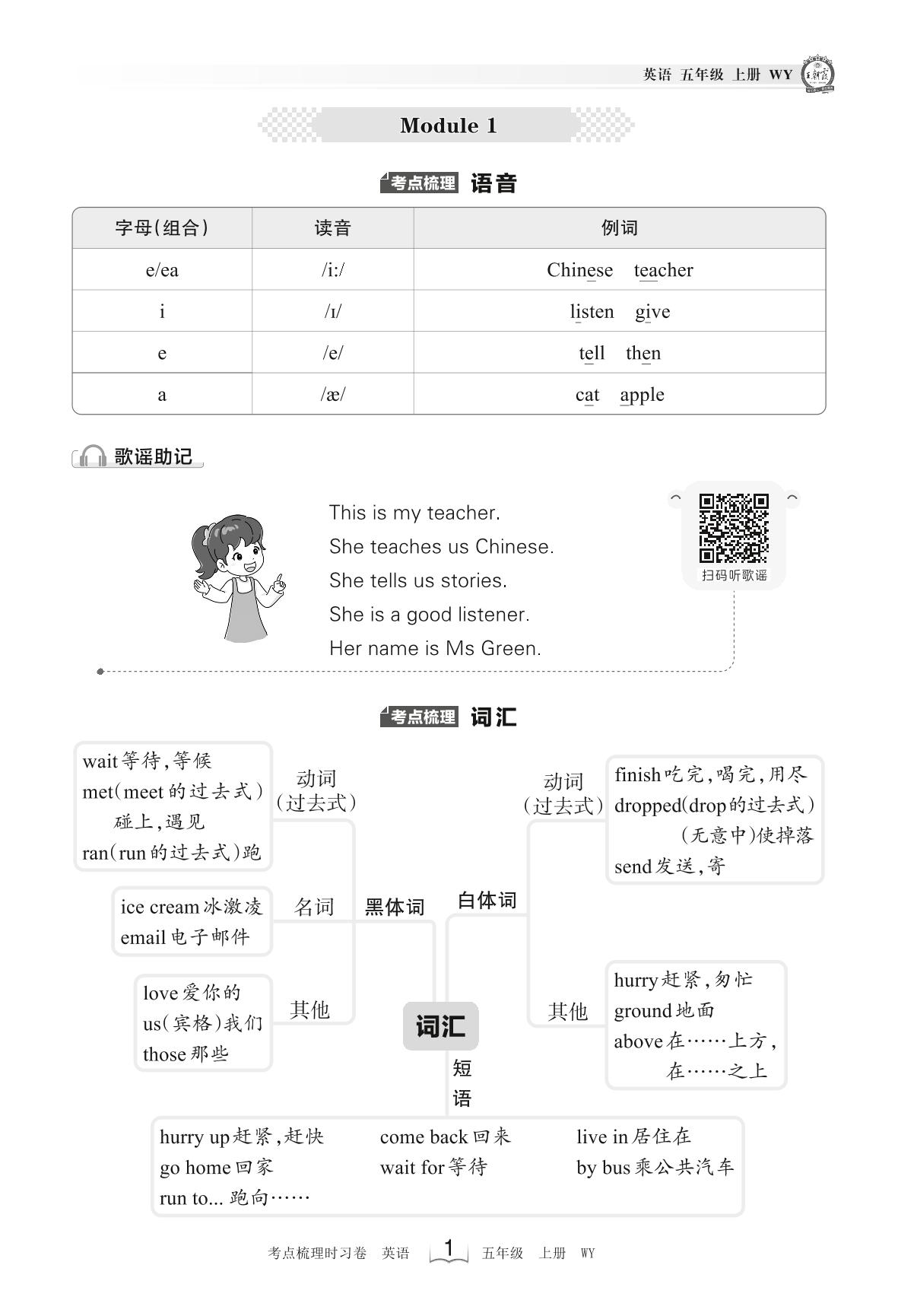 2023上册五年级英语外研版 考点梳理手册——Module 1
