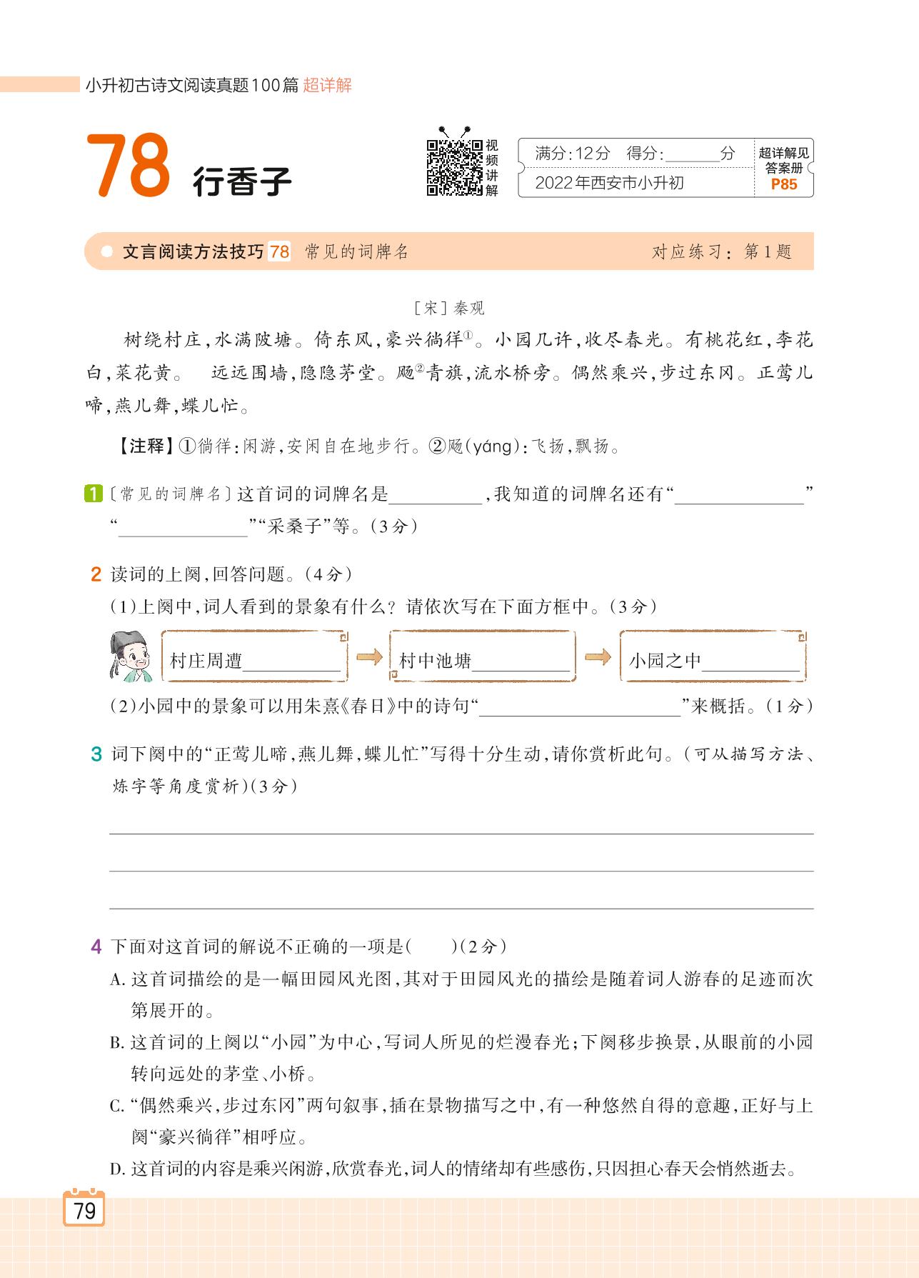 2024全一册六年级语文人教版 专题七 山水田园 78 行香子 (树绕村庄)