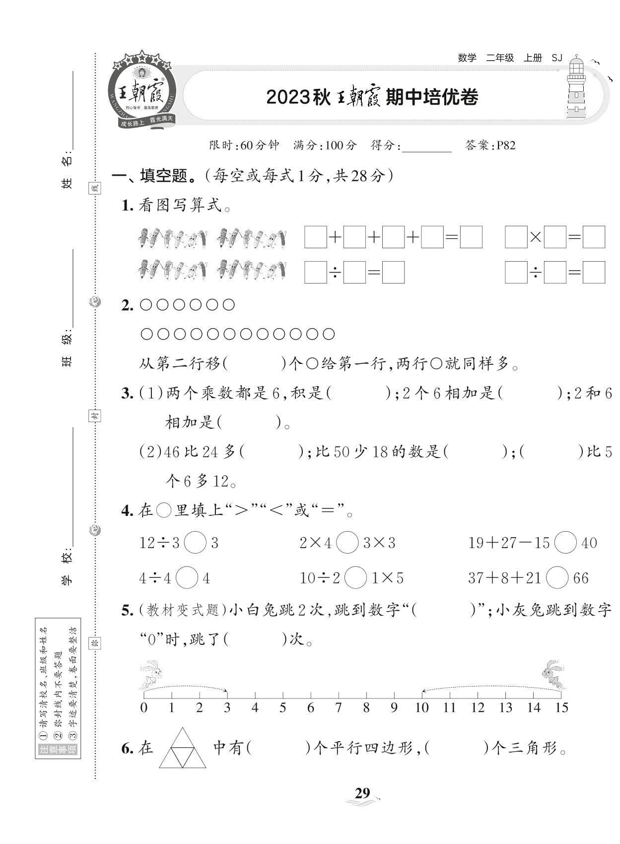 2023上册二年级数学苏教版 2023秋王朝霞期中培优卷