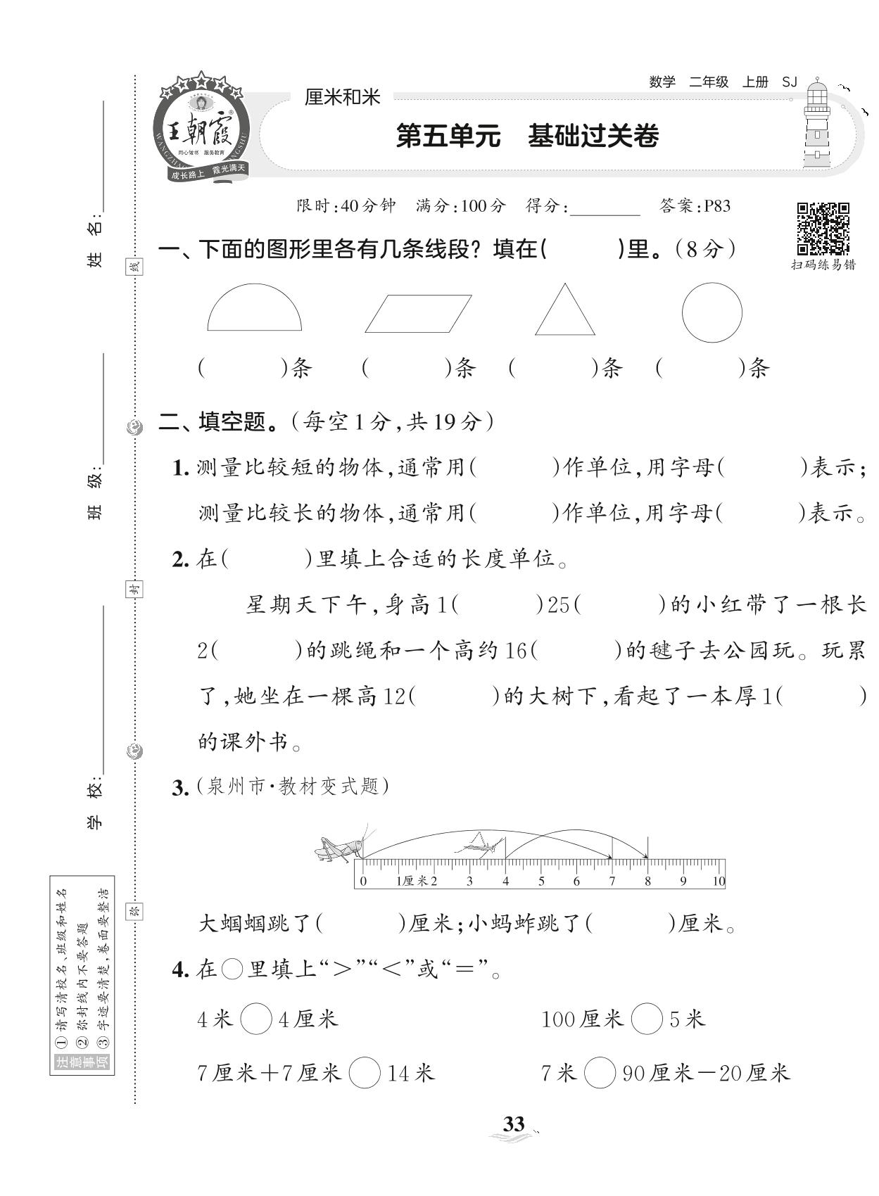 2023上册二年级数学苏教版 第五单元 基础过关卷