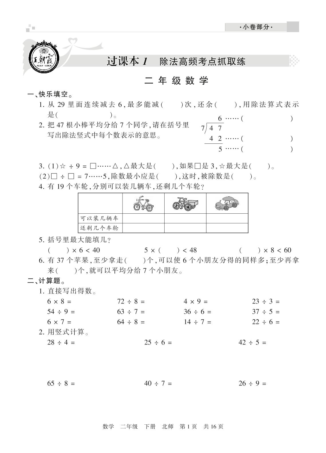 王朝霞期末过课本二年级下册数学(北师版)_R21080391115【0】