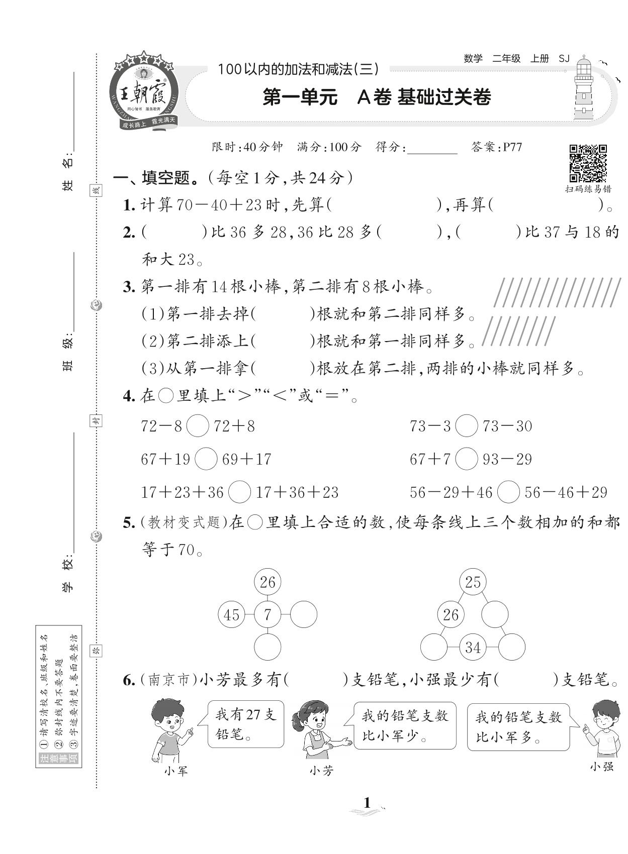2023上册二年级数学苏教版 第一单元 A卷 基础过关卷