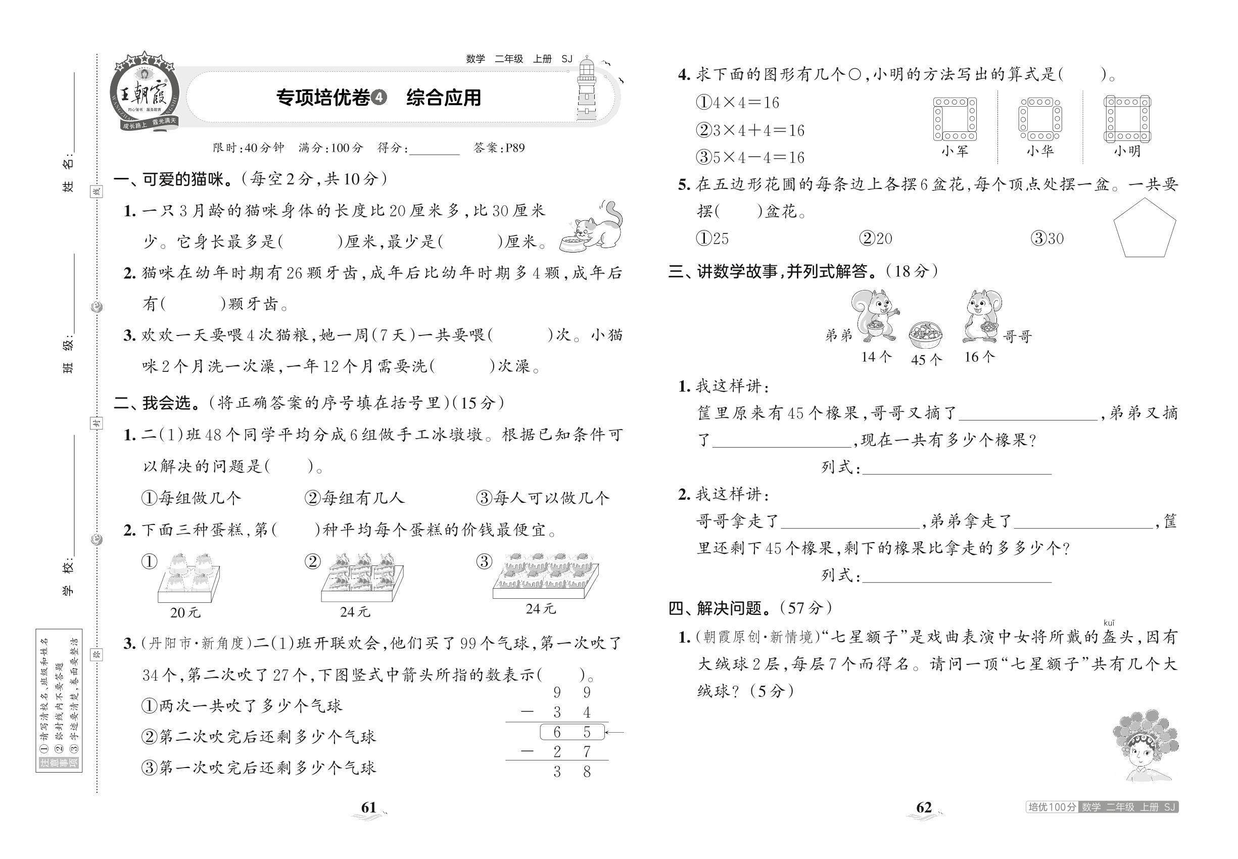 2023上册二年级数学苏教版 专项培优卷4 综合应用