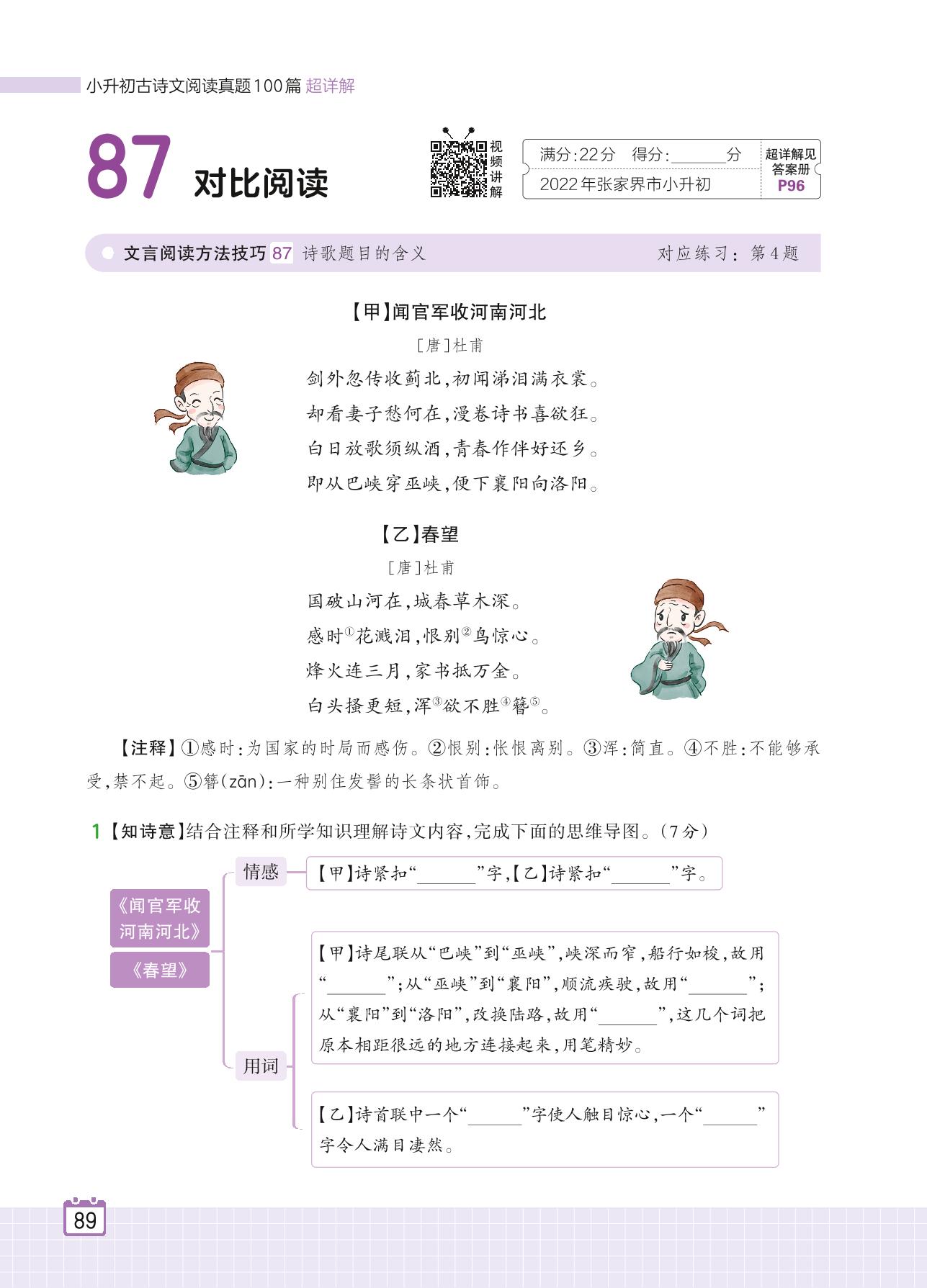 2024全一册六年级语文人教版 专题九 爱国忧民 87 对比阅读