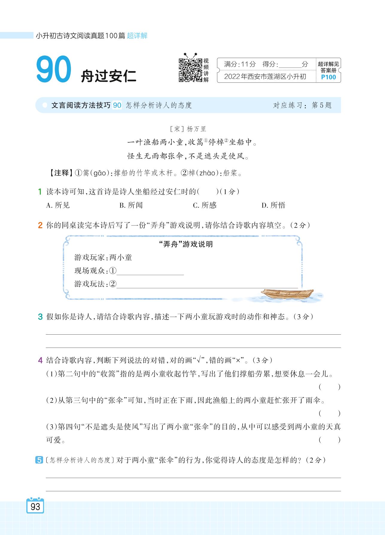 2024全一册六年级语文人教版 专题十 儿童生活 90 舟过安仁