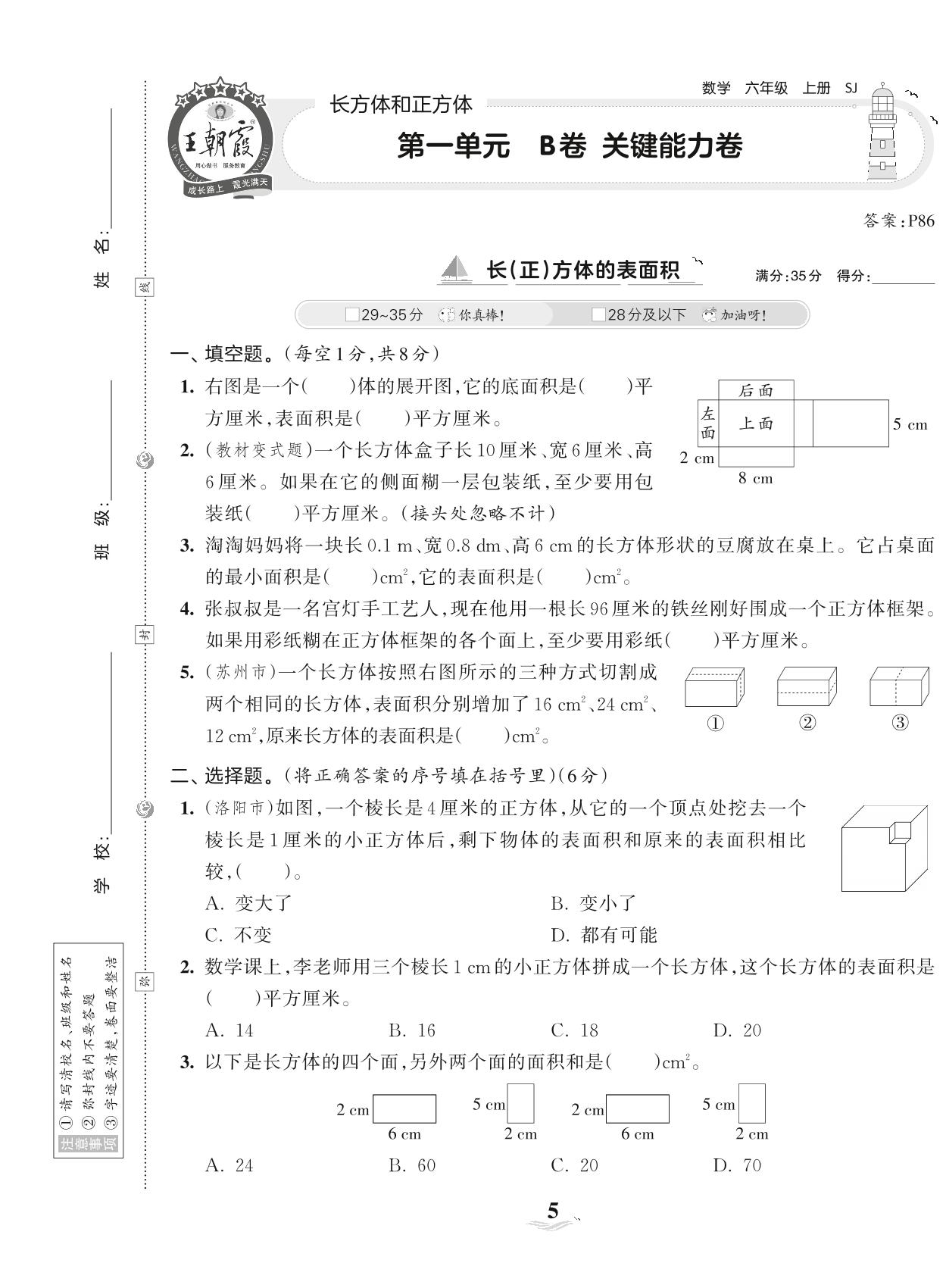 2023上册六年级数学苏教版 第一单元 B卷 关键能力卷