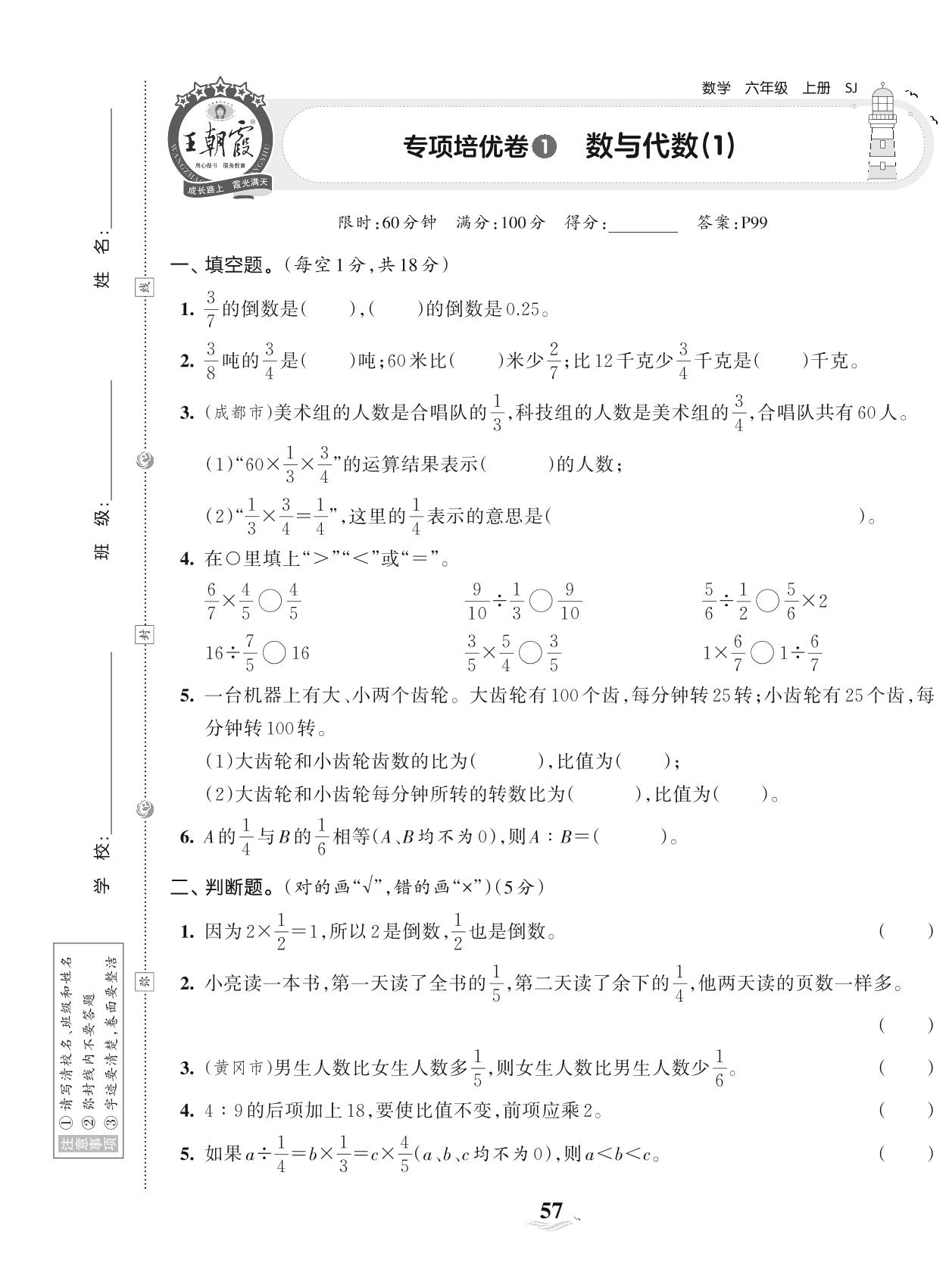 六年级数学苏教版上册专项卷