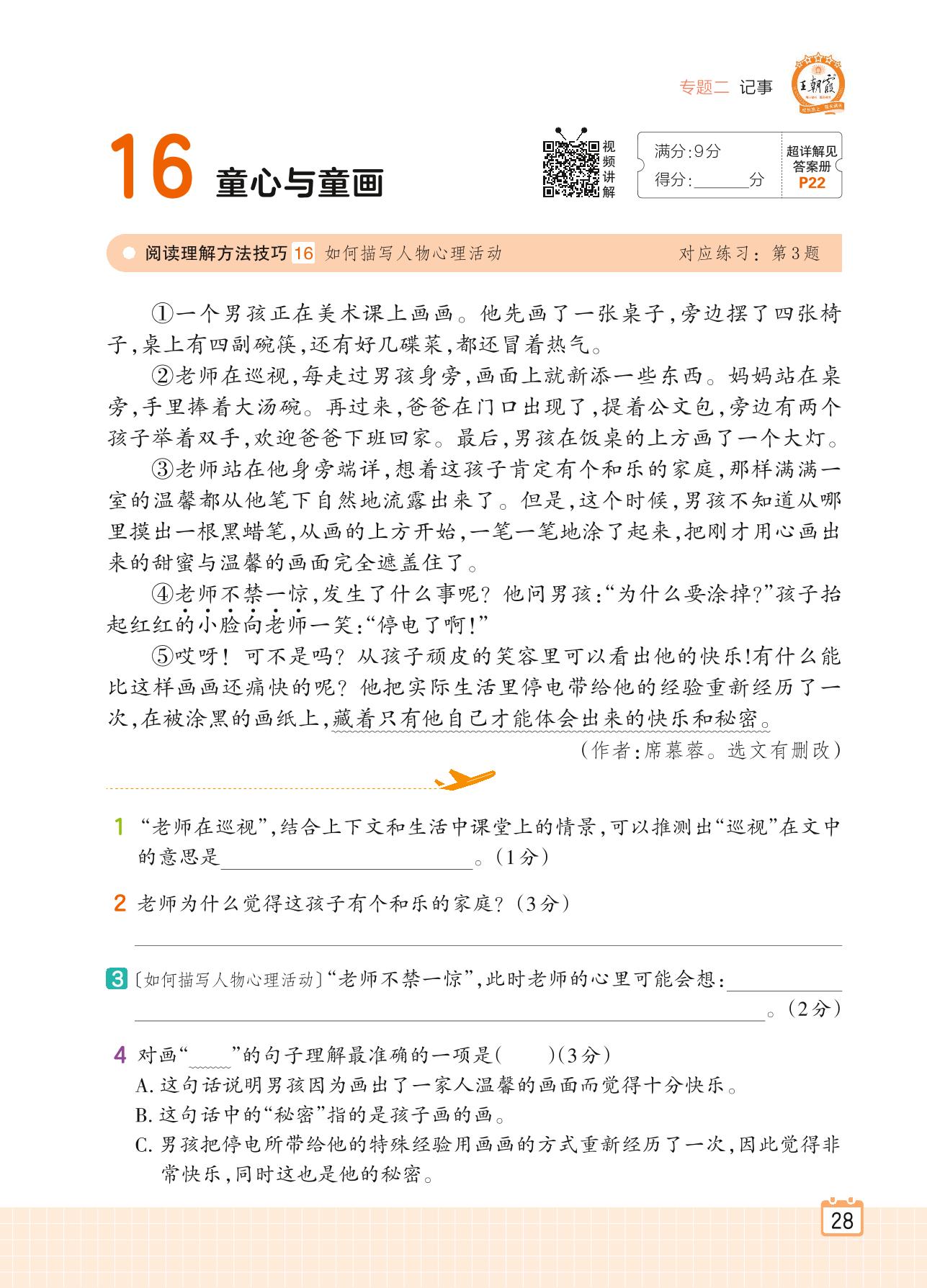 2024全一册三年级语文人教版 专题二 写事 16 童心与童画