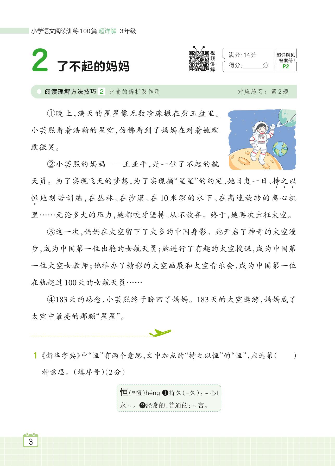 2024全一册三年级语文人教版 专题一 写人 2 了不起的妈妈