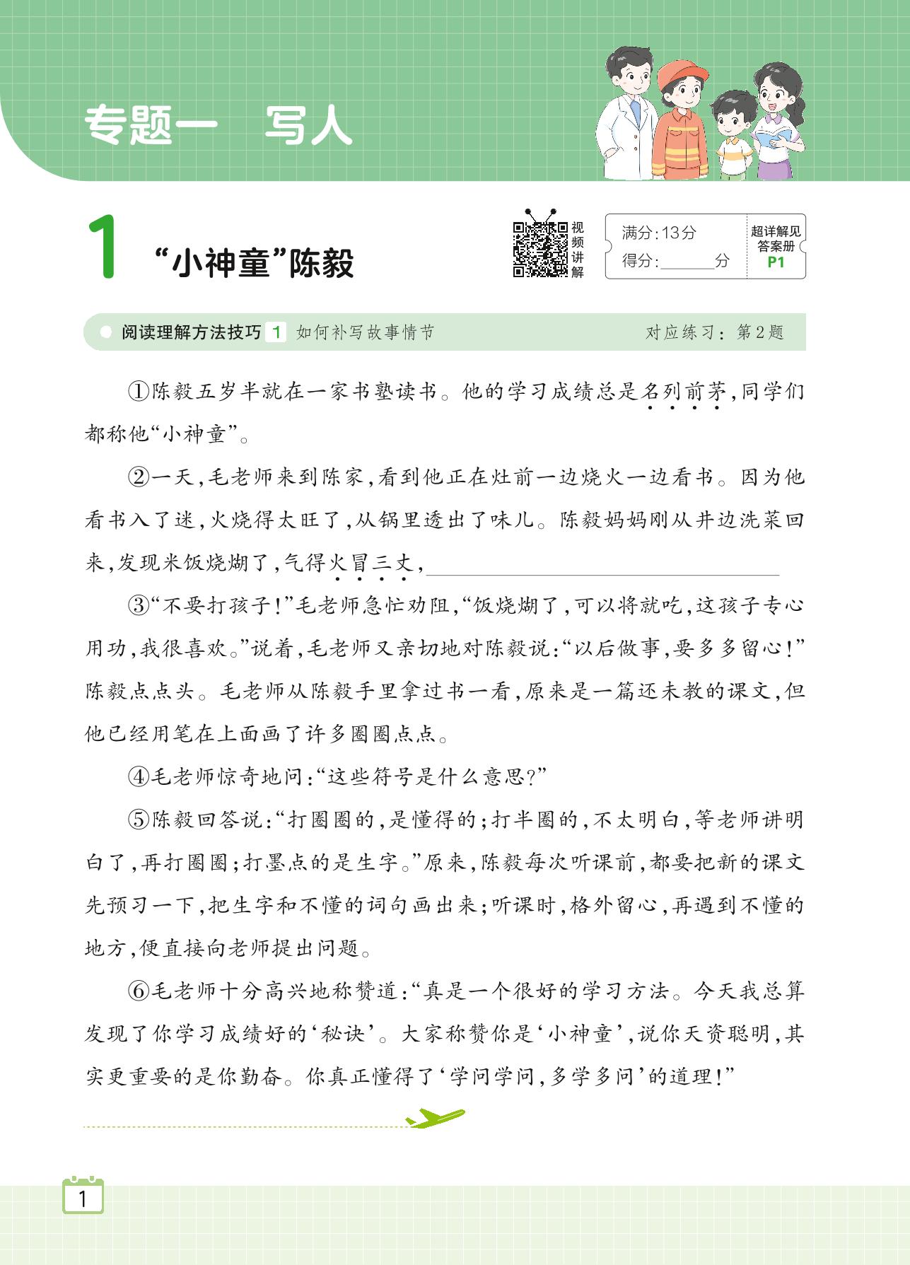 2024全一册三年级语文人教版 专题一 写人 1 “小神童”陈毅