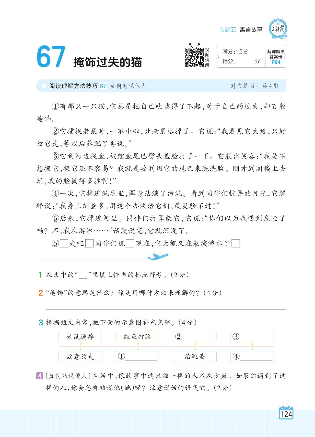 2024全一册三年级语文人教版 专题五 寓言故事 67 掩饰过失的猫