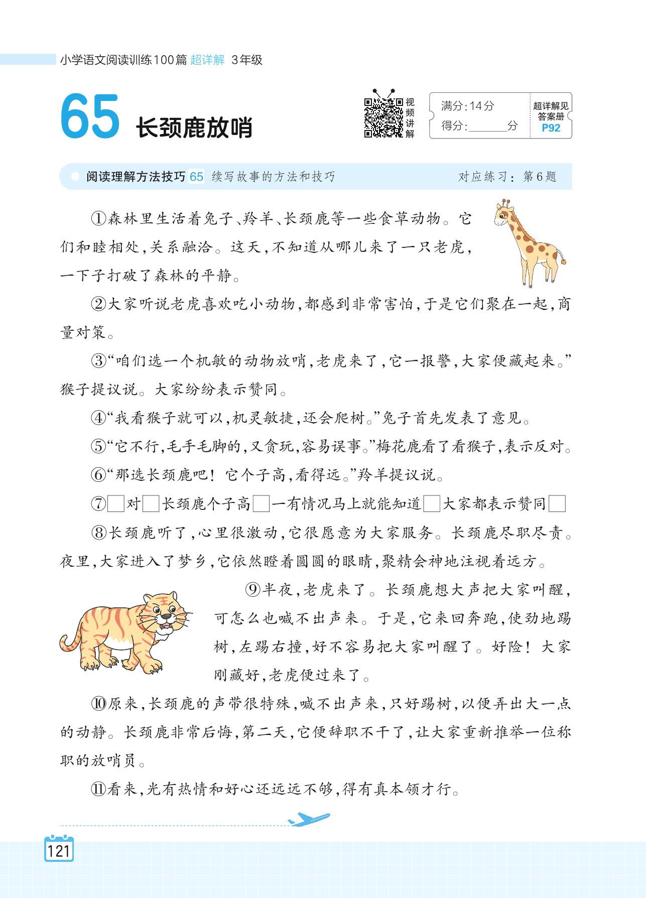 2024全一册三年级语文人教版 专题五 寓言故事 65 长颈鹿放哨