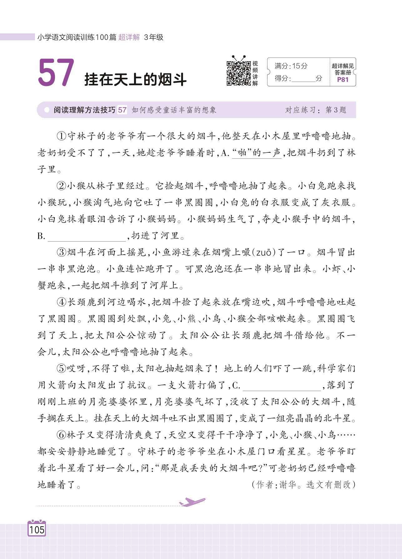 2024全一册三年级语文人教版 专题四 童话故事 57 挂在天上的烟斗