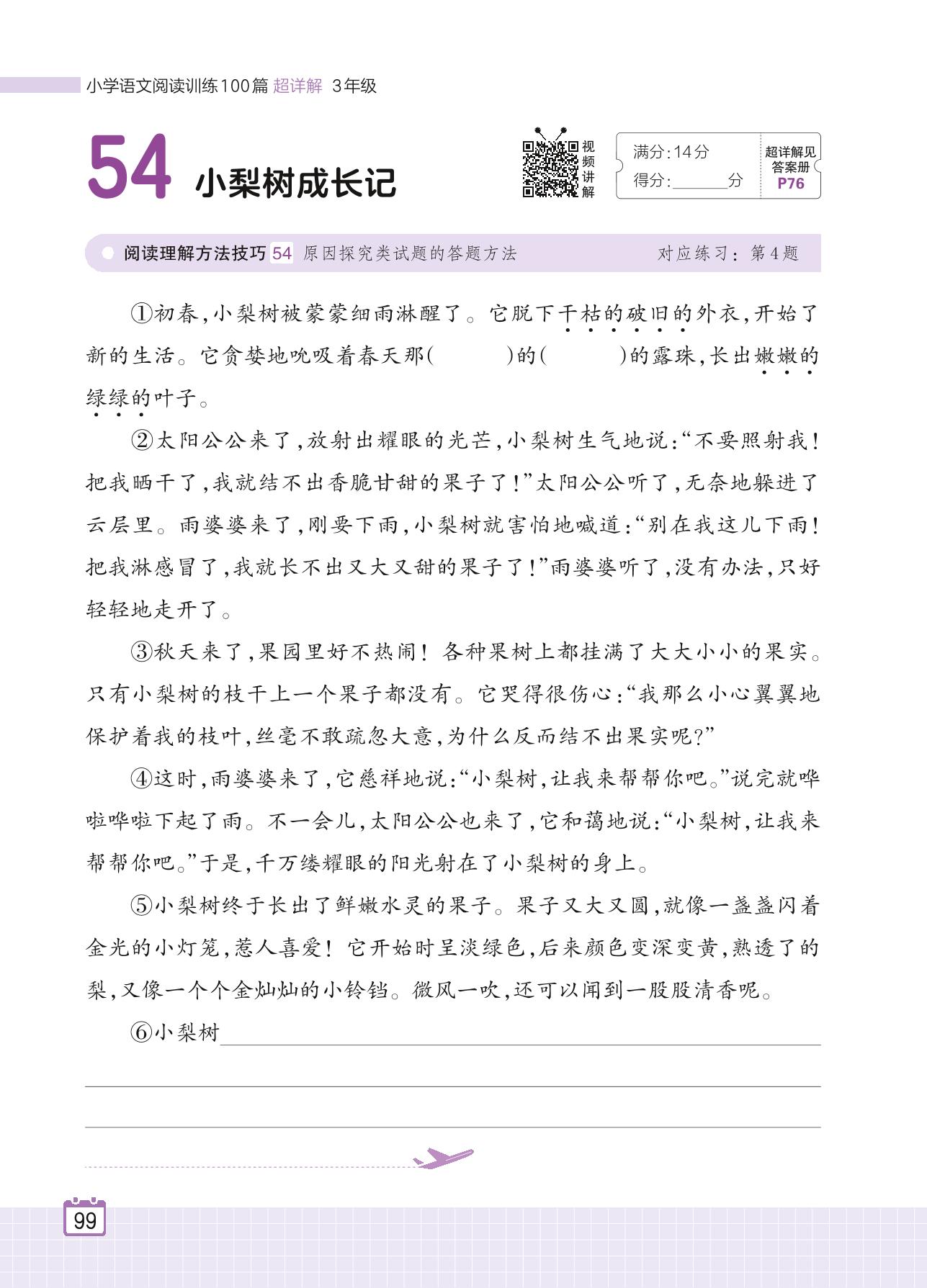 2024全一册三年级语文人教版 专题四 童话故事 54 小梨树成长记