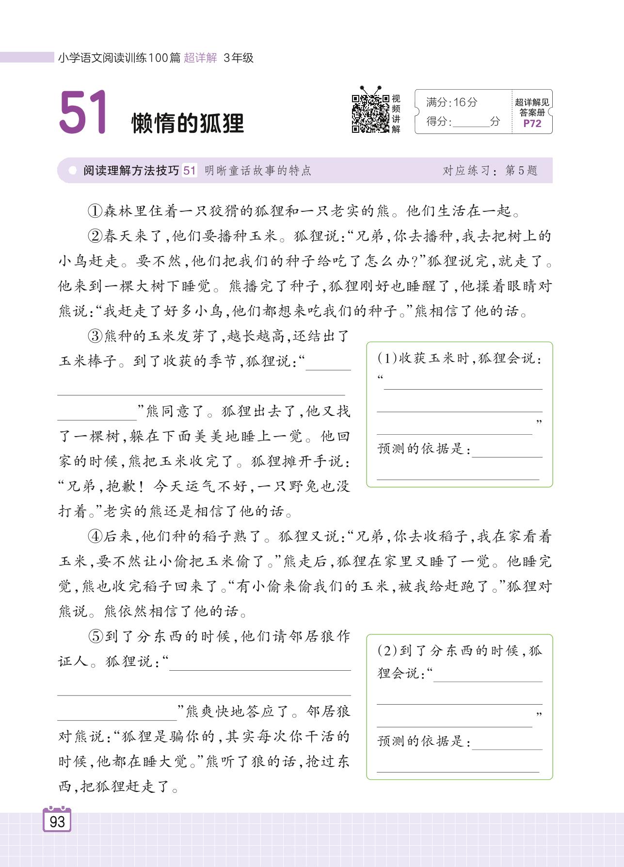 2024全一册三年级语文人教版 专题四 童话故事 51 懒惰的狐狸
