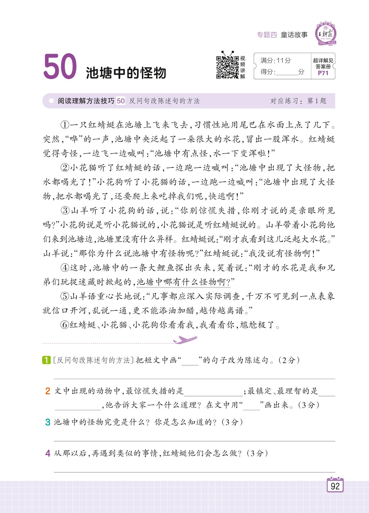 2024全一册三年级语文人教版 专题四 童话故事 50 池塘中的怪物