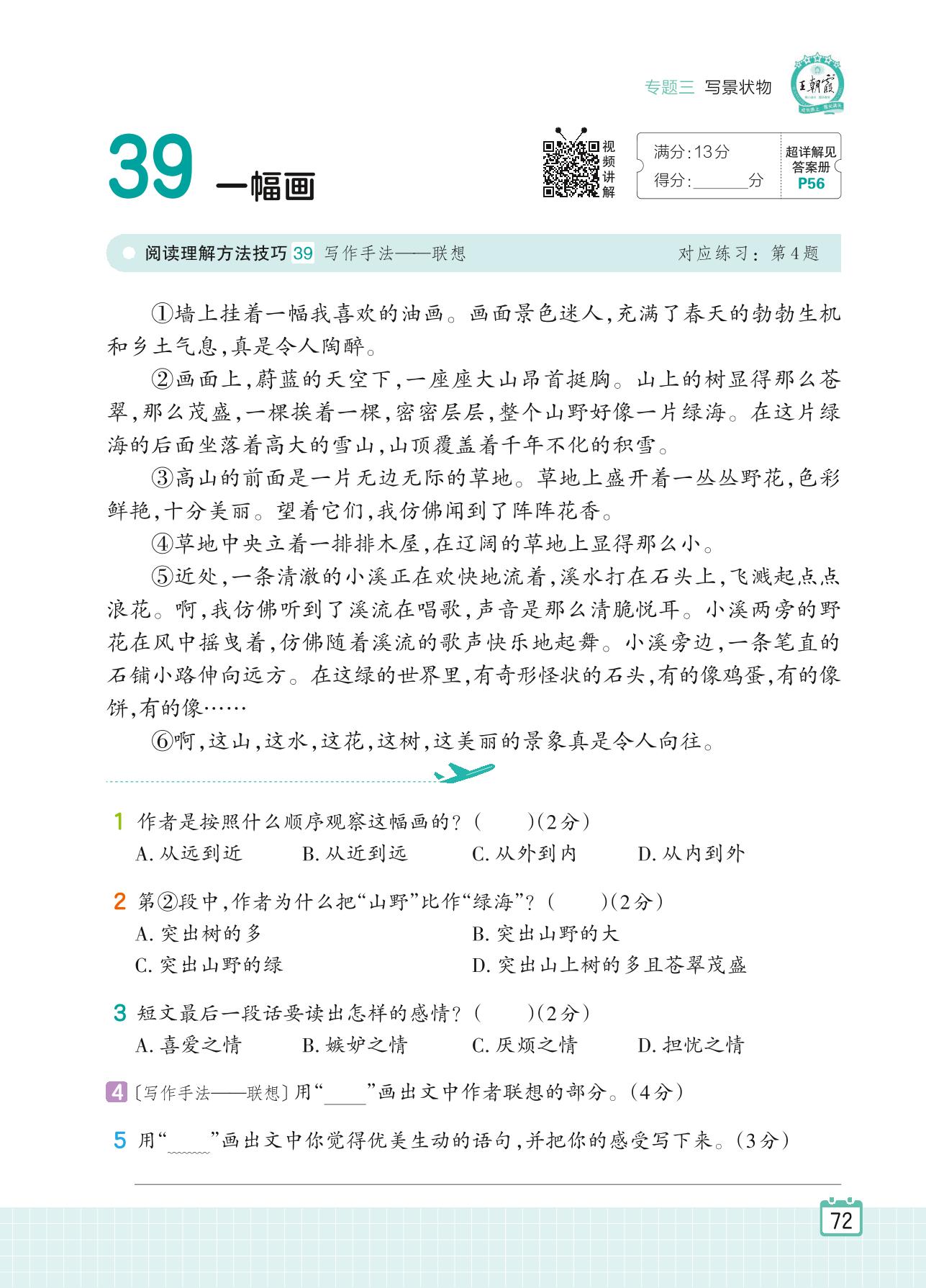 2024全一册三年级语文人教版 专题三 写景状物 39 一幅画