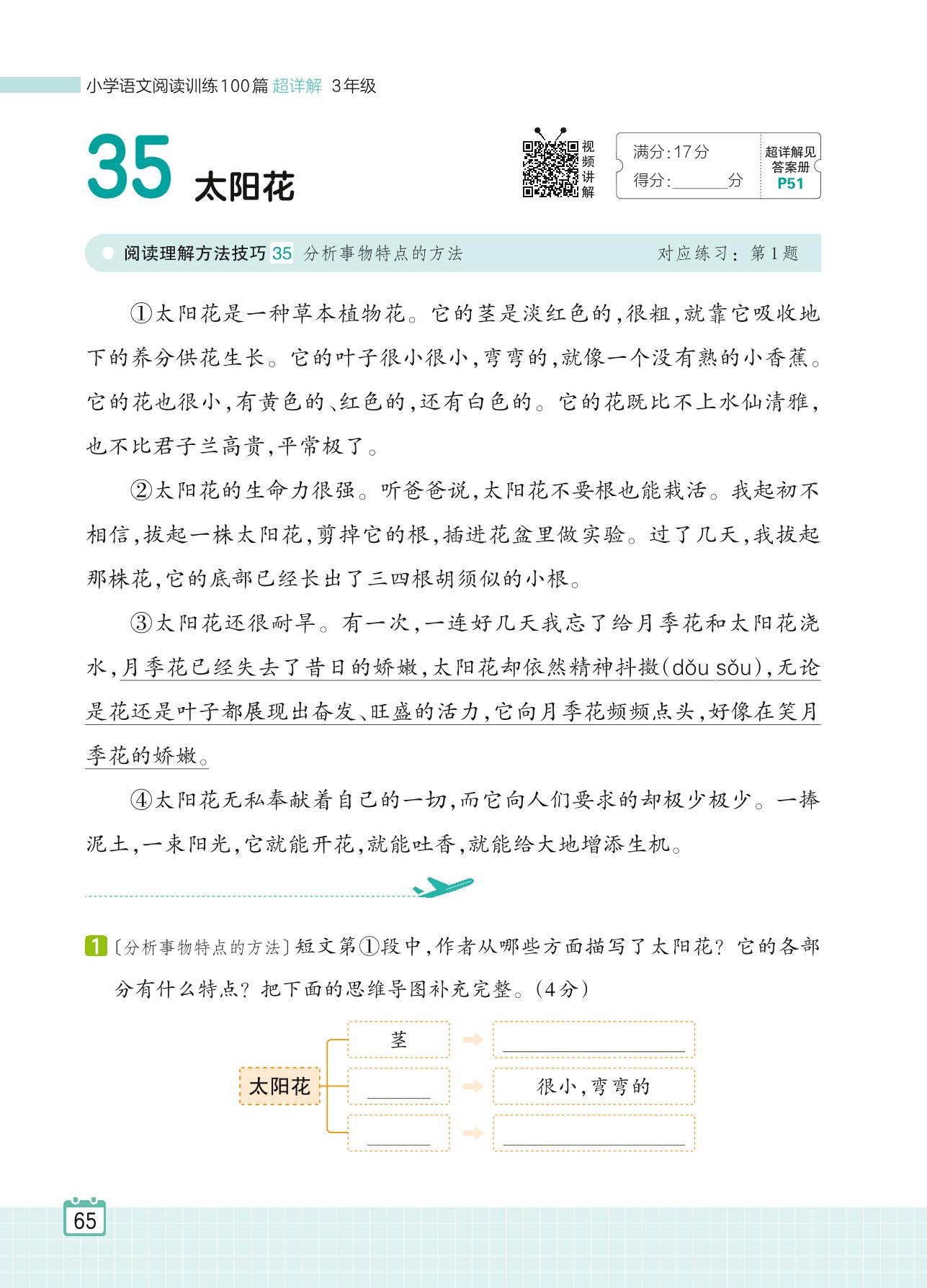 2024全一册三年级语文人教版 专题三 写景状物 35 太阳花