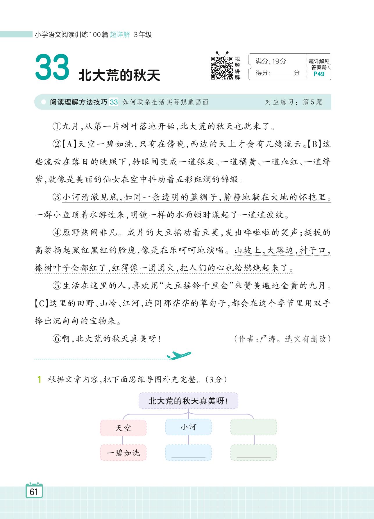 2024全一册三年级语文人教版 专题三 写景状物 33 北大荒的秋天