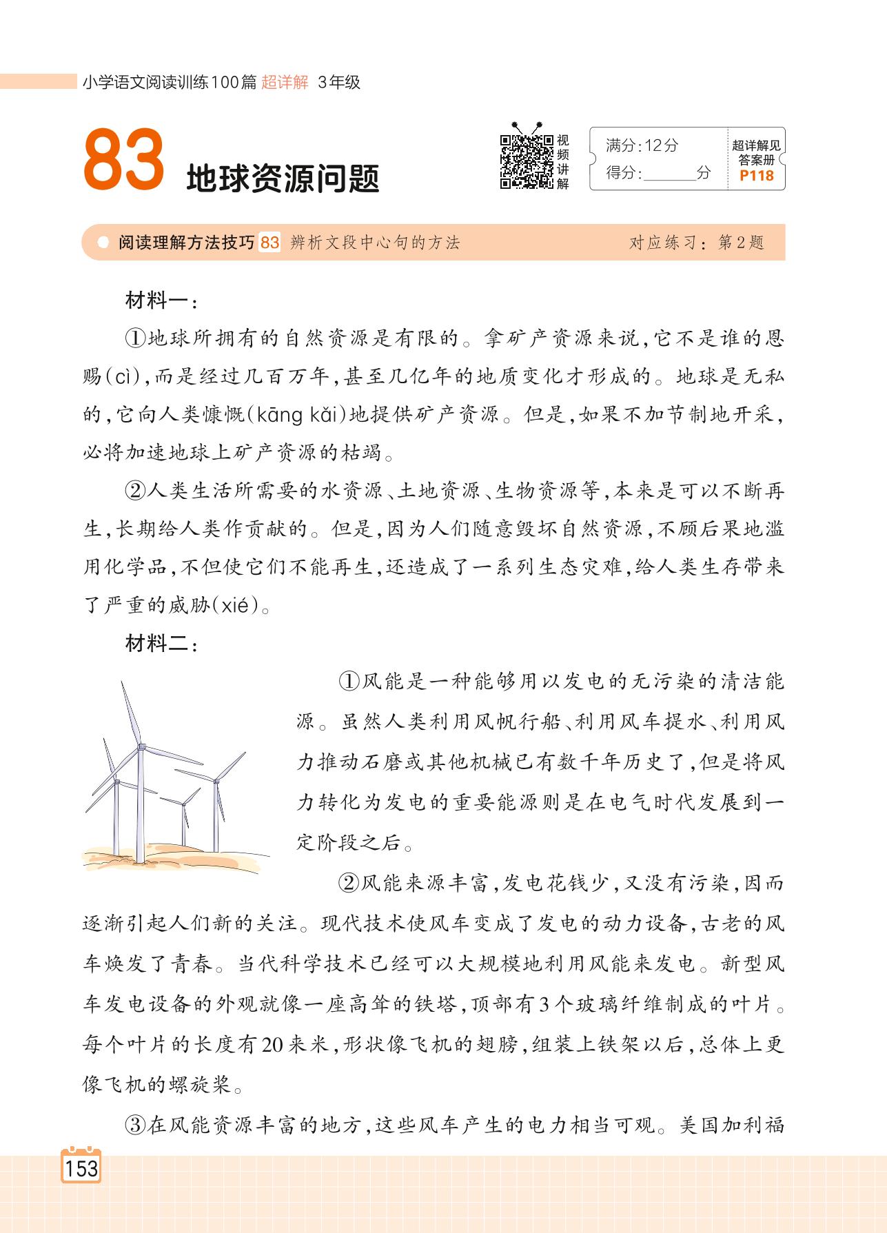 2024全一册三年级语文人教版 专题七 非连续性文本 83 地球资源问题