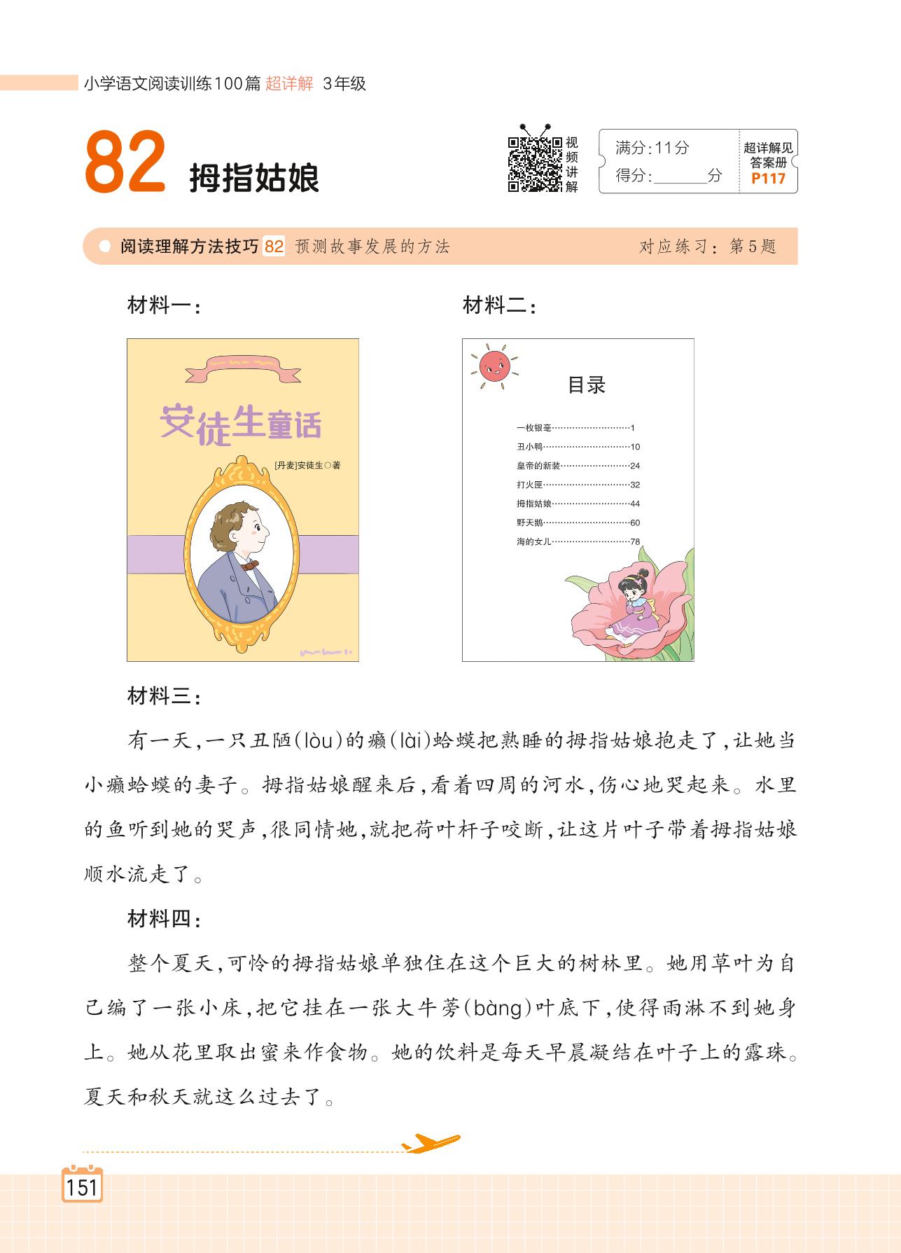 2024全一册三年级语文人教版 专题七 非连续性文本 82 拇指姑娘
